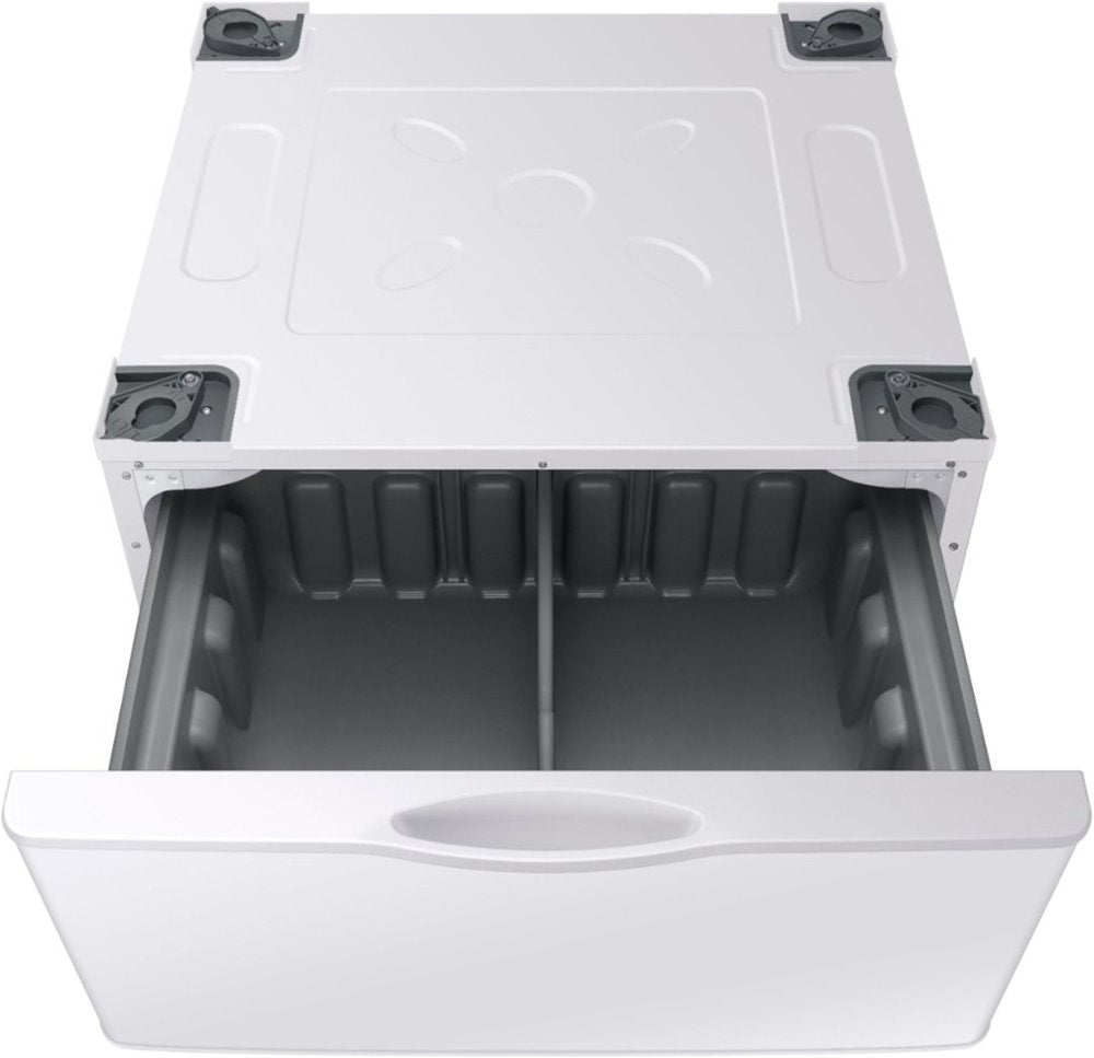This 27" wide pedestal will allow you to lift your Samsung front-load washer or dryer by more than a foot for a more convenient height. Tidy up your laundry space with an easily accessible built-in storage drawer.