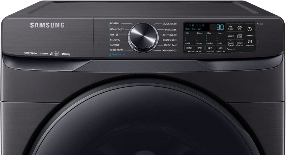 Samsung's new 5.0 cu. ft. large-capacity front-load washer helps you fit more in every load and cut down on laundry time, leaving more time for you. Featuring Super Speed technology, you can now wash a full 8-lb. load of laundry in just 30 minutes without sacrificing cleaning performance. With Wi-Fi connectivity, you can also receive end of cycle alerts, remotely start or stop your cycle, schedule laundry on your time and more, right from your smartphone.