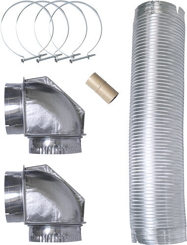 Enhance drying time with this dryer vent kit that features custom fitted ends and clamps for quick and easy installation.