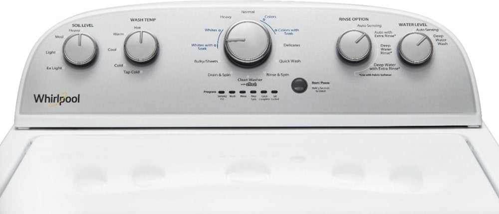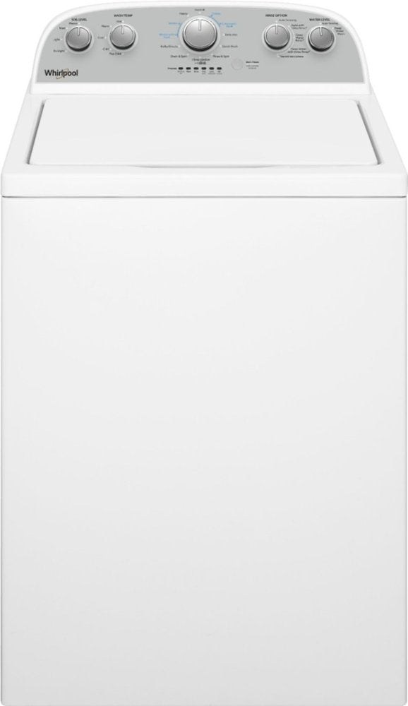 Take control of laundry day chores with this 27-inch Whirlpool top load washer. Its 3.8 cu. ft. capacity provides enough space for bulky items, and the two way wash action agitator handles tough, heavily soiled loads. The Auto Sensing feature of this Whirlpool top load washer automatically adjusts water levels based on load size to save energy.