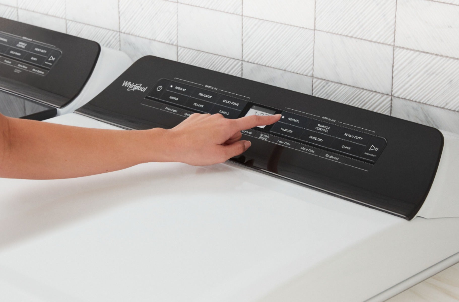 Create customized cycles for your large-capacity gas dryer in a few touches for the right fabric care. A dryer's Sanitize cycle uses higher temperatures to sanitize items such as towels, while the Wrinkle Shield option helps keep wrinkles from setting into clean clothes. And to save energy, the EcoBoost option uses less heat while providing the same quality drying performance.