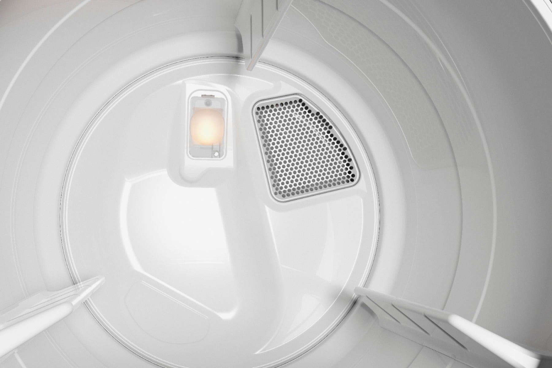 Two built-in sensors measure moisture and temperature levels to help prevent overdrying, and automatically stop the cycle when the load is dry.