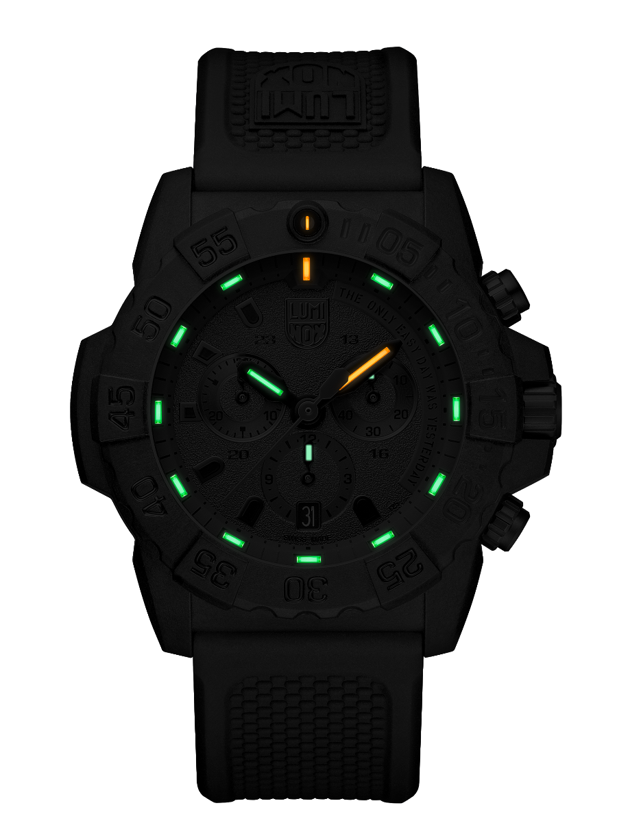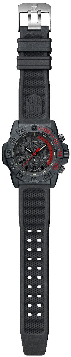 The 3580 Series Navy Seal Watch begins with Luminox's classic silhouette but features several upgraded elements to help you weather the toughest of obstacles. The stealthy all black color-way of this timepiece is only enhanced by the striking red accents on the hands, face and dial. Complete with chronograph, date and time functionality; the Navy Seal Chronograph Watch refuses to sacrifice on function and durability. Their signature CARBONOX casing with mineral glass ensures a tough, lightweight feel while the Swiss Quartz movement capitalizes on years of careful craftsmanship. Whether your going for a swim, climbing peaks, or just handling your day to day tasks; the Series 3580 Chrono has you covered.