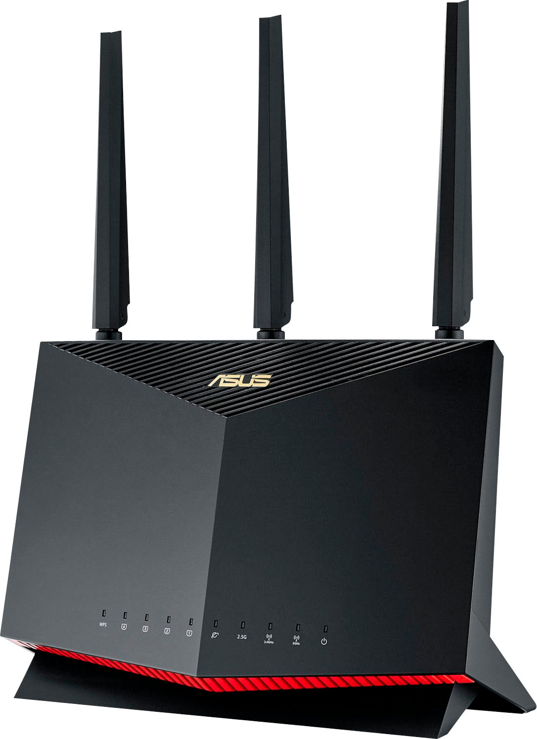 Asus RTAX86U Dual Band WiFi 6 Gaming Router, WiFi 6 802.11ax, Mobile Game Mode, Lifetime Free Internet Security, Mesh WiFi support, 2.5G Port, Gaming Port, Adaptive QoS, Port Forwarding-New-generation WiFi 6 - Enjoy ultrafast speeds up to 5700 Mbps with the latest WiFi 6 (802.11ax) and 160MHz channels-Mobile Game Mode - Minimize lag and latency for mobile gaming with just a tap on the ASUS Router app-True 2 Gbps wired and wireless speeds - Aggregated 2 Gbps WAN connections, wired 2.5 Gbps port and WiFi 6-ASUS AiMesh support - Create a flexible, seamless whole-home mesh network with AiMesh-compatible routers-Commercial-grade home network security - Lifetime free ASUS AiProtection Pro, powered by Trend Micro