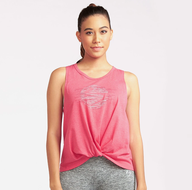 Another great BEACHBODY layering piece for a fashionable look while you workout! Adorable twist tie off to the side for a fantastic tapered look. All these details along with fantastic performance fabric to assist in keeping you dry with Dry-Tek with cotton-hand!