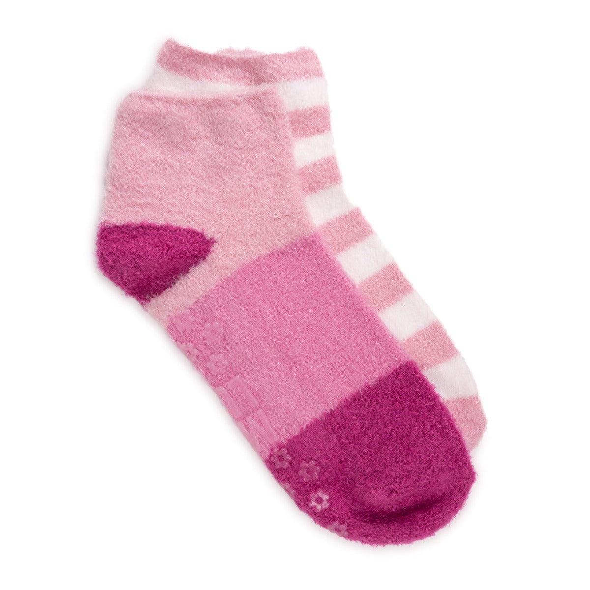 Pull on, aloe infused, non skid bottom, warm and cozyMachine wash cold. Only non-chlorine bleach when needed. Dry flat. Imported.-90% Nylon, 8% Polyester and 2% Spandex Knit-Non-Skid Dots