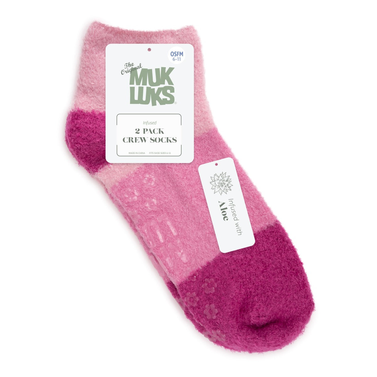 Step up your self-care routine with MUK LUKS® Women's 2 Pair Pack Aloe Infused Crew Socks. These oh so soft, aloe infused socks will leave your skin feeling soothed and moisturized. Non-skid PVC dots are there to keep you from slipping on slick floors and fun colors add fun to your self-care routine.