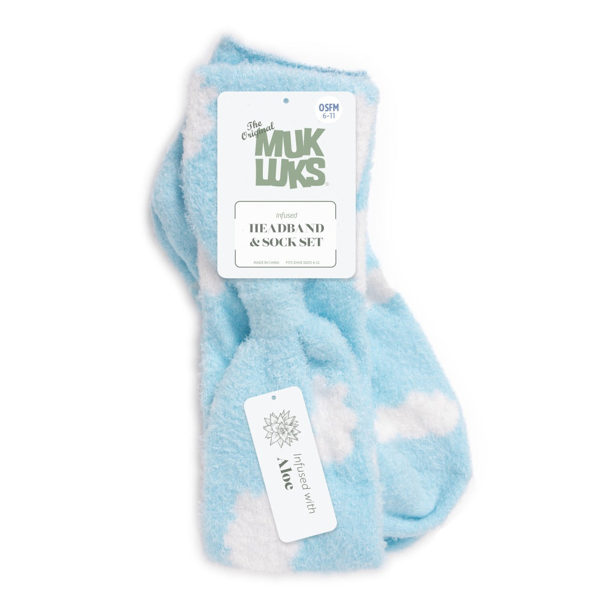 MUK LUKS® Women's Aloe Infused Sock and Headband Set Light Blue OSFM