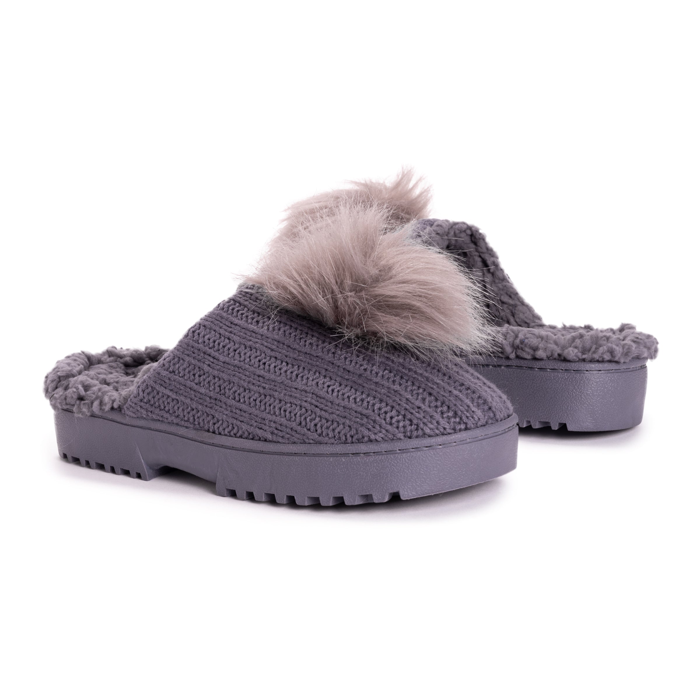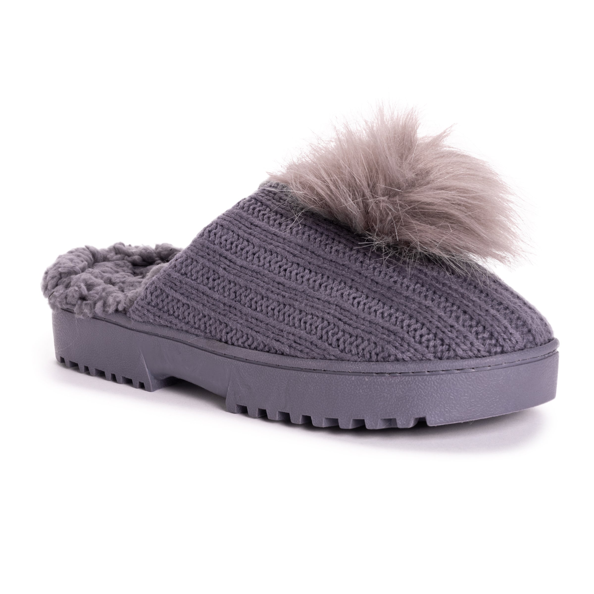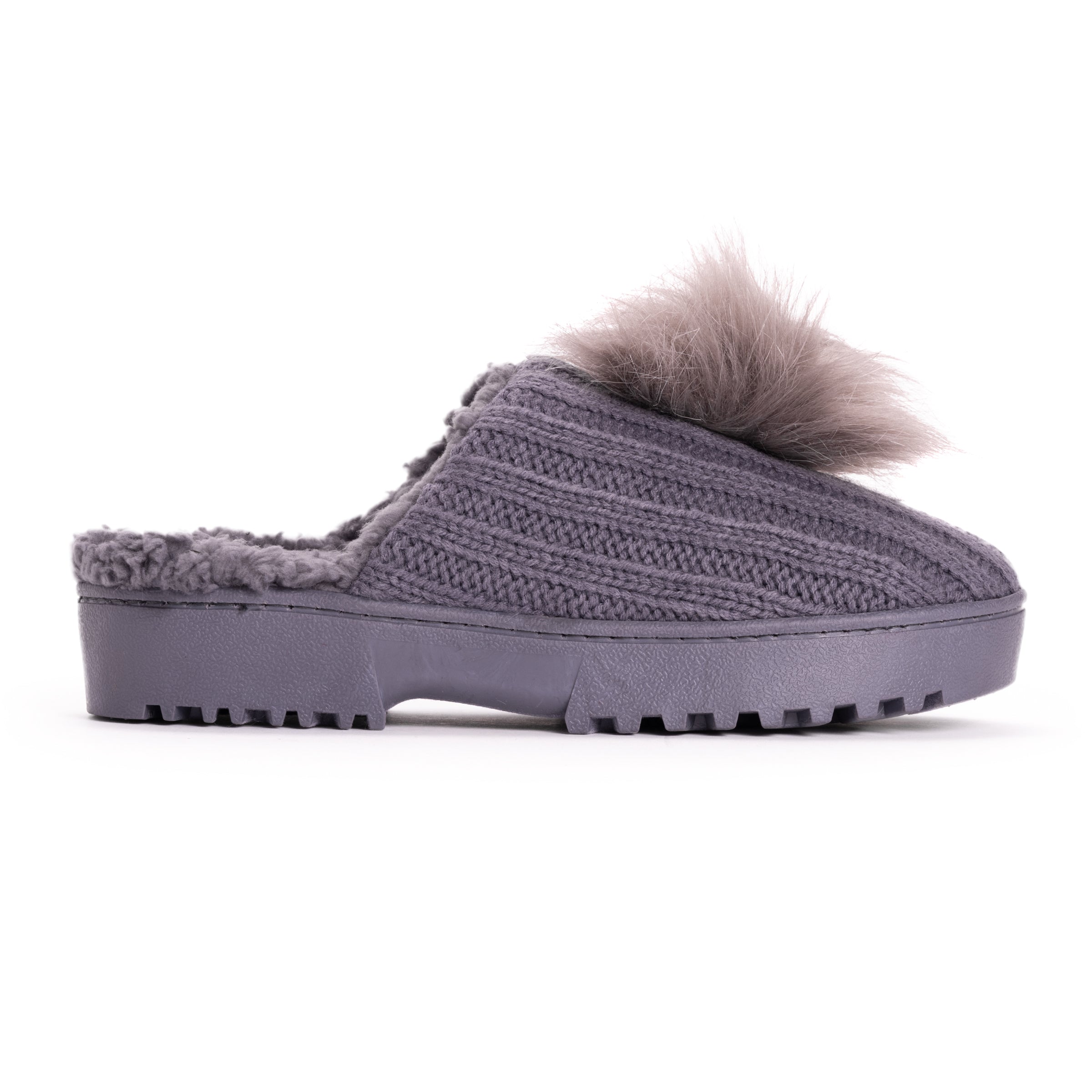 Look cute and feel cozy in MUK LUKS Women’s Charisma Slippers. Slip on these classic slides and let the durable sole take you where you need to go while soft faux fur lining keeps toes warm. Wipe with damp cloth, do not bleach, dry flat. Imported.- Indoor/Outdoor TPR Sole- Foam Insole- 100% Acrylic Upper- 100% Polyester Faux Shearling Lining-Braided Knit Pattern-Pom Detail- Multiple color options available- US Women’s Sizes S (5-6), M (7-8), L (9-10), XL (11-12)