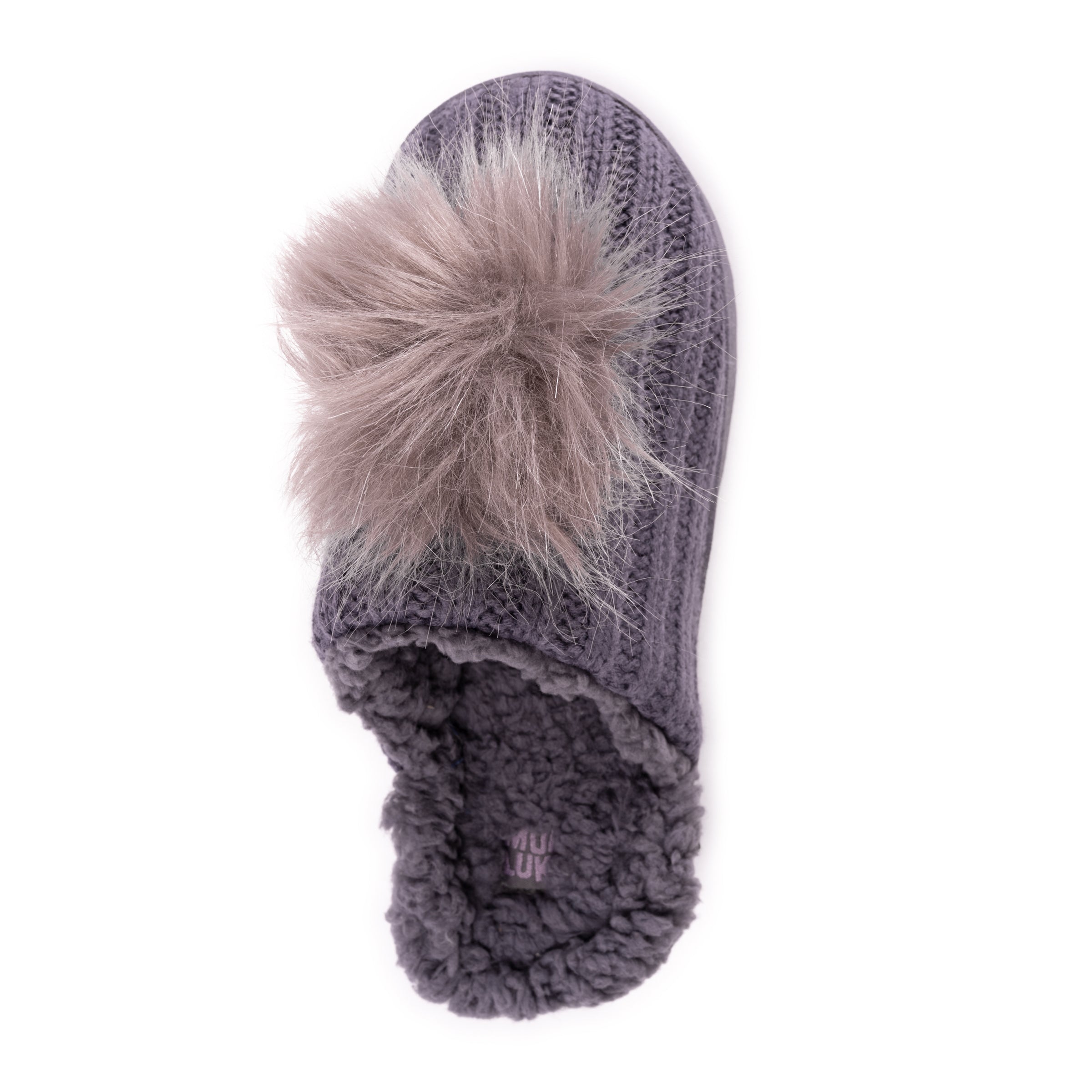 Slide on, Foam insole, Subtile knit texture, Fun pom pom detail
