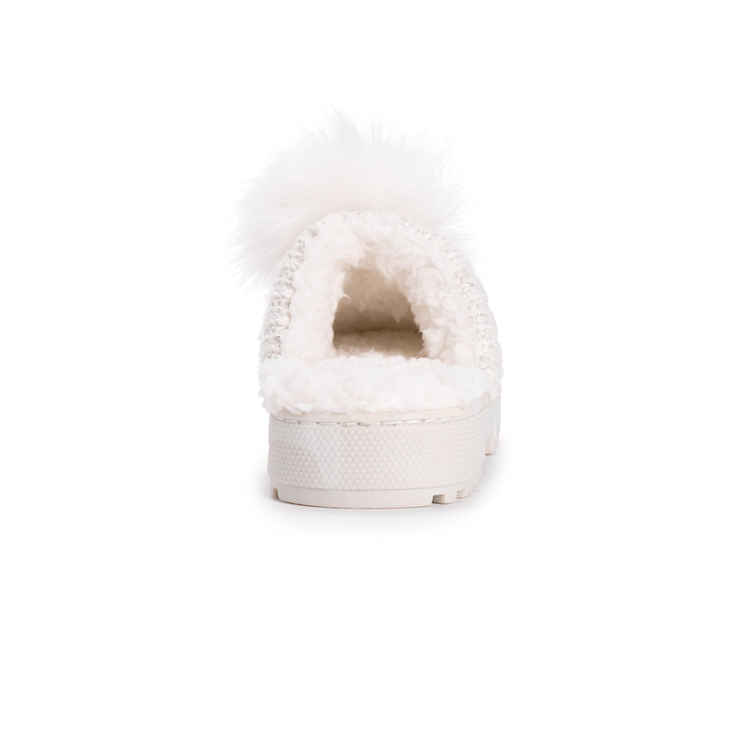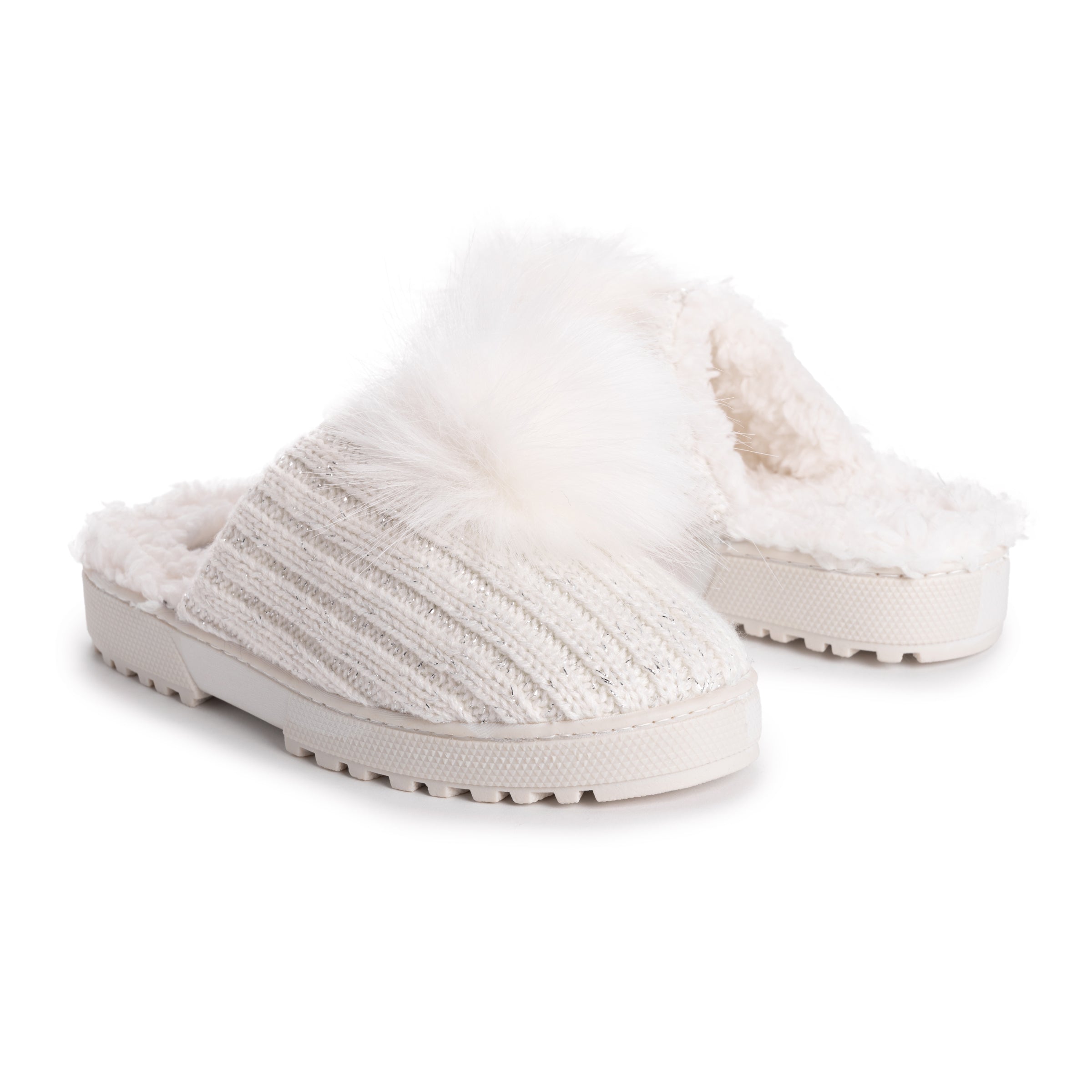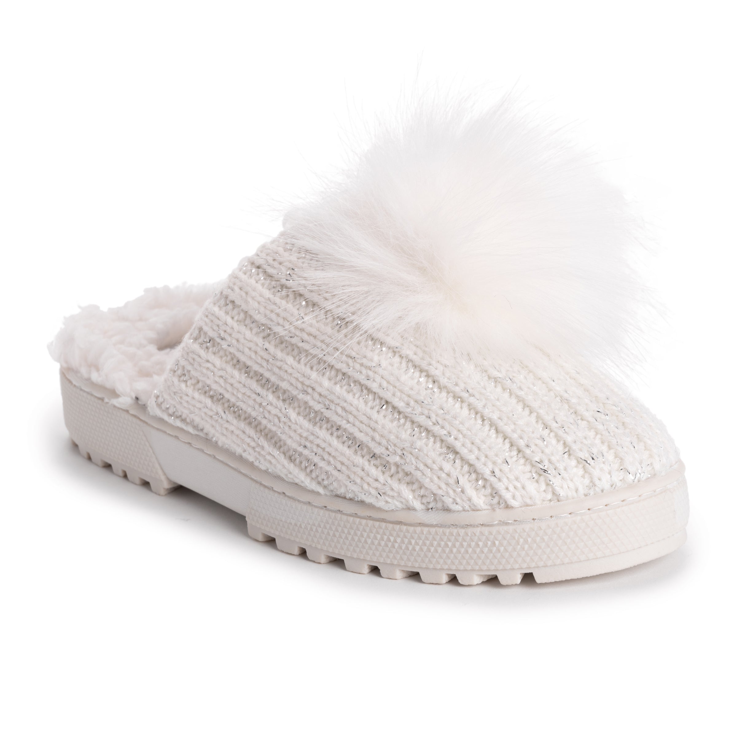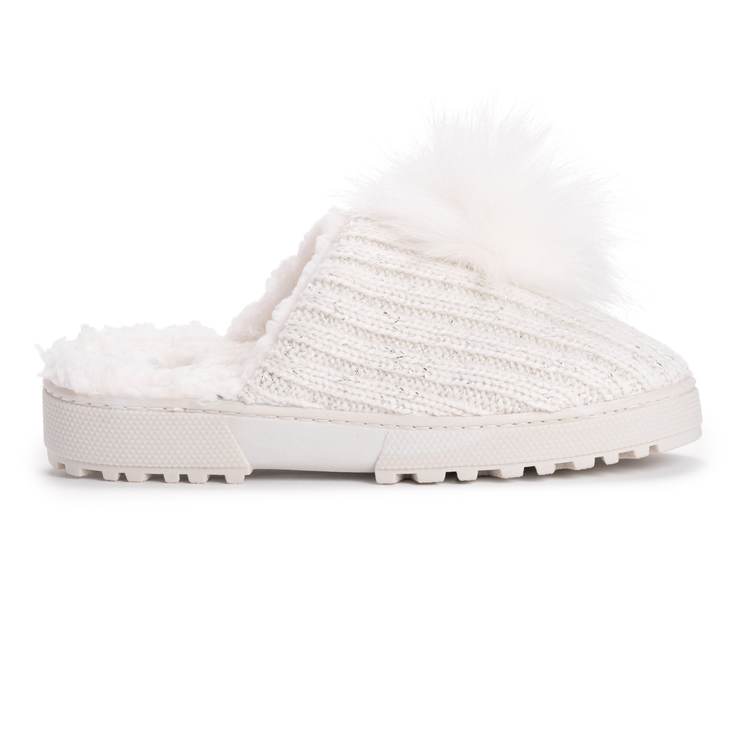 Slide on, Foam insole, Subtile knit texture, Fun pom pom detail