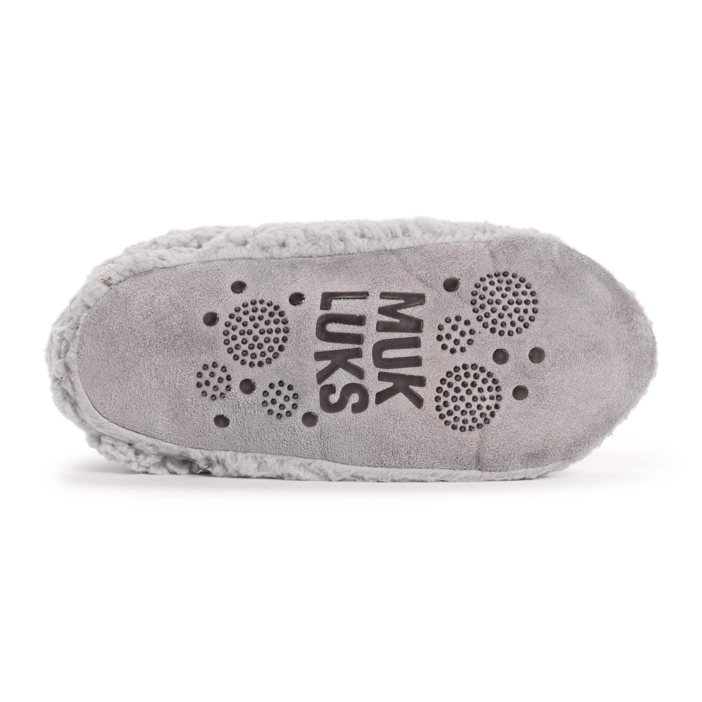 Sit down and relax in MUK LUKS® Women's Foldover Booties. With soft faux shearling and foam insoles, these booties will keep feet warm and comfortable while non-skid dots keep you safe on slick floors.Wipe with damp cloth. Do not bleach. Dry flat. Imported. -100% Polyester Faux Shearling Upper-100% Acrylic Overlay-100% Polyester Faux Shearling Lining-Non-Skid PVC Dot Sole-Foam Insole-Multiple Color Options-US Women’s Sizes S/M (5-7), L/XL (8-10)