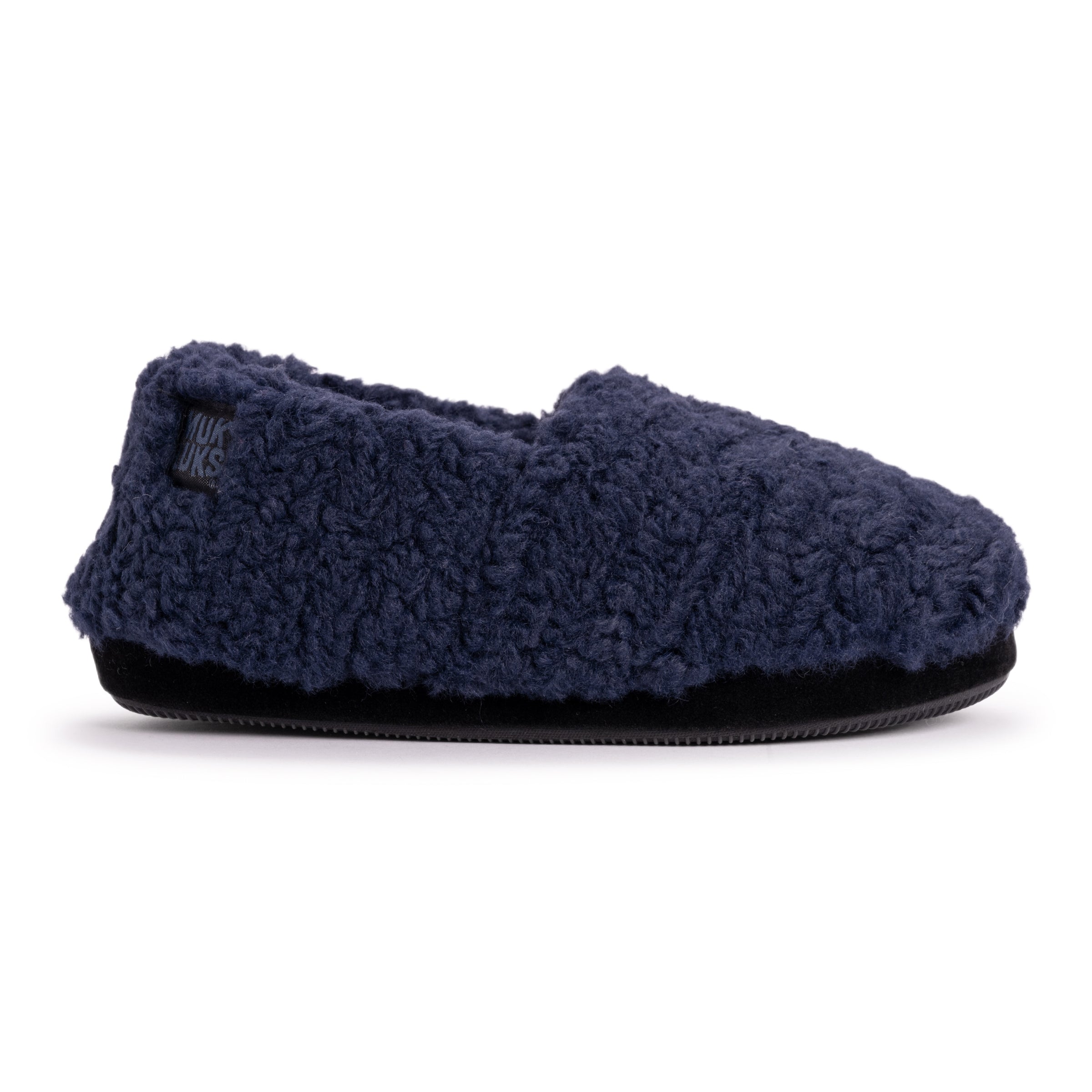 Take on cold weather in MUK LUKS® Women's Talora Slippers. These cozy full coverage slippers will keep toes warm with teddy bear soft faux shearling and plush foam insoles will make you feel comfortable instantly. Wipe with damp cloth, do not bleach, lay flat to dry. Import.-Indoor/Outdoor TPR Sole-100% Polyester Faux Shearling Upper-100% Polyester Faux Shearling Lining-Foam Insole-US Women's Sizes S (5-6), M (7-8), L (9-10), XL (11-12)-Multiple color options available