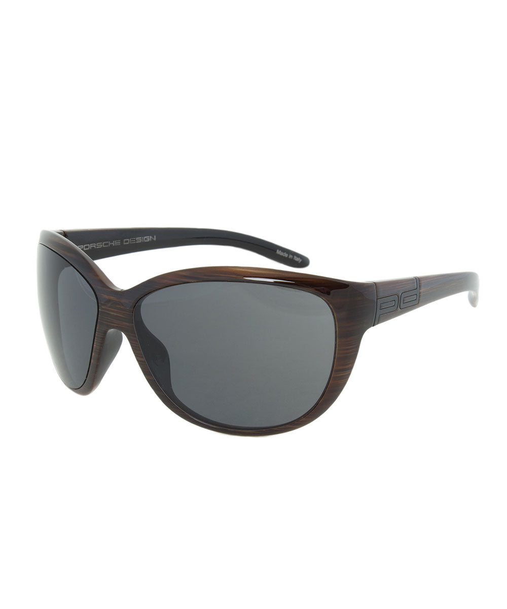 Refreshingly minimalist and wonderfully unobtrusive, these Porsche Design P8524 C Sunglasses are well ahead of the style and design curve. The striped brown wood pattern single bridge full rim oversized modified cateye frame is adorned with engraved branding situated at the temples. The misty grey lenses create an ideal match to successfully complete this enticing model.