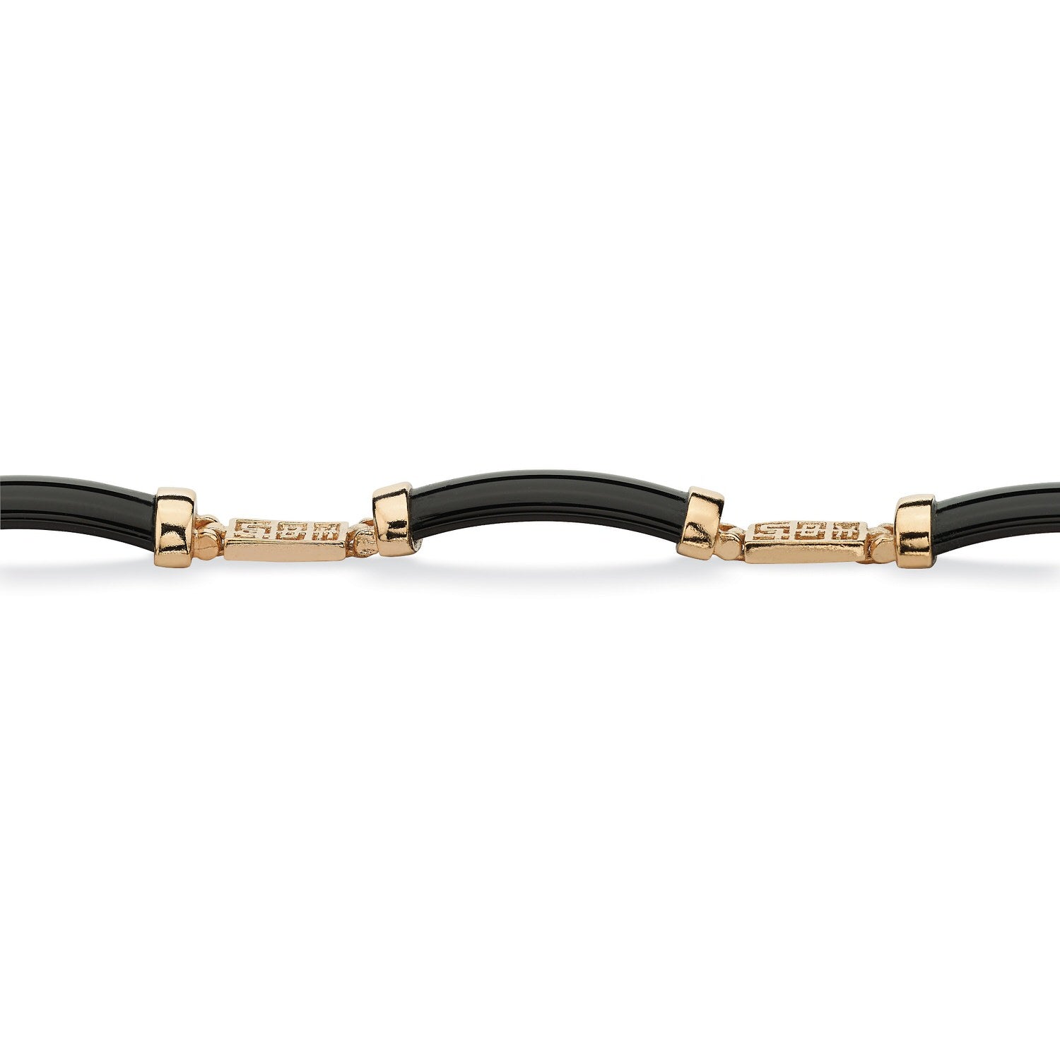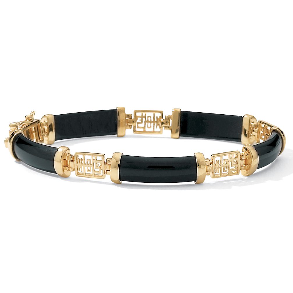 This onyx-link bracelet is embellished with the Chinese characters that signify longevity. And because of its unique design, it is sure to be one of your favorite bracelets for a long time. 7 1/4" length. 14k gold-plated.