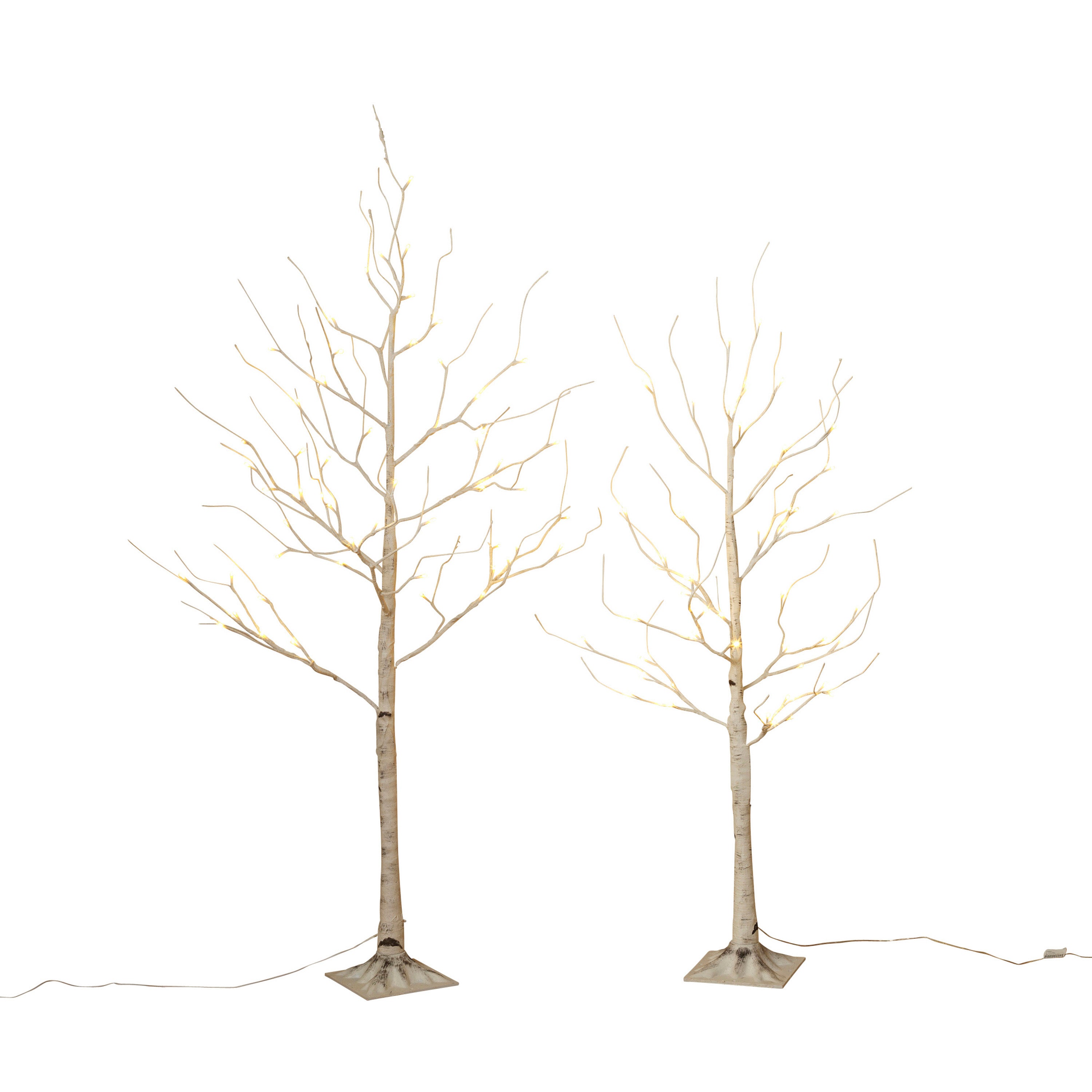 A great accent to any décor, use this 4-foot high birch tree to add light and backdrop for your seasonal home décor. This metal tree is wrapped to give it a smooth textured, verigated appearance and hold 48 warm LED lights that will shine among the branches. This tree can be used indoors, or out with an adapter that is included. Add sprigs of floral, hang ornaments, there is no limit on what you can do to with this accent tree that is just the right size for apartments to entryways, enjoy in your home decor.