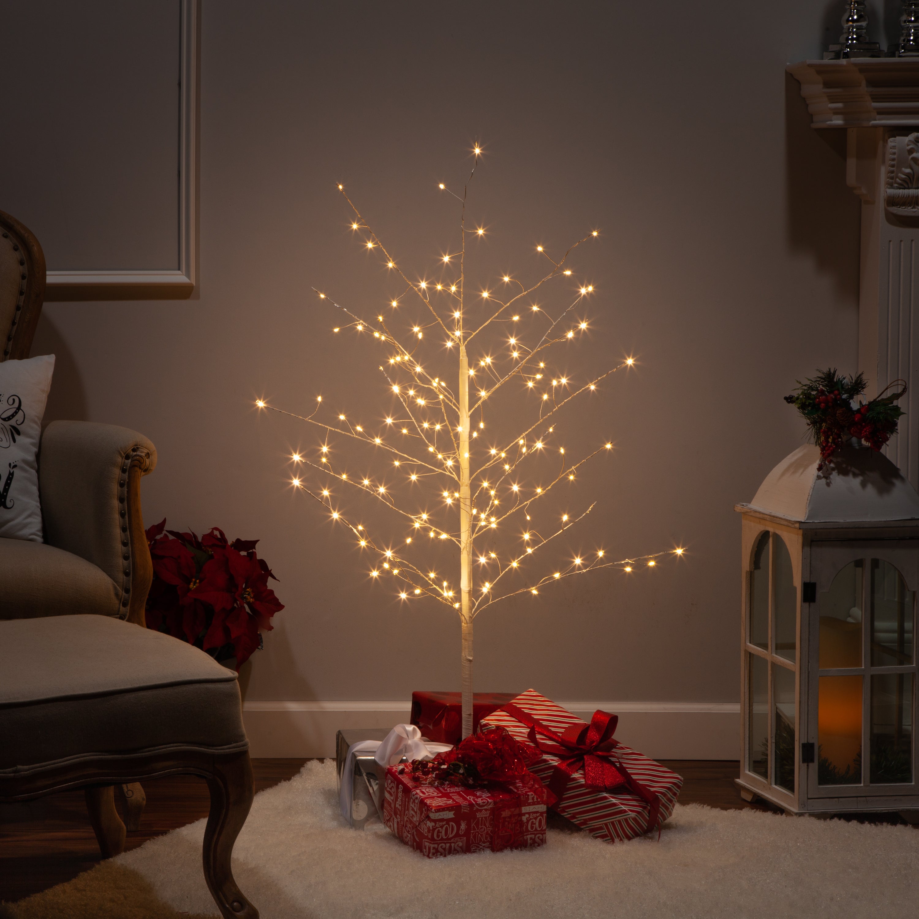 A great accent to any décor, use this almost 4-foot high white tree to add light and backdrop for your seasonal home décor. This metal tree is wrapped to give it a smooth textured, elegant white appearance and hold 150 bright warm LED lights that will shine among the branches. Elegant for year-round use,you can also add sprigs of floral, hang ornaments, there is no limit on what you can do to with this accent tree that is just the right size for apartments to entryways, enjoy in your home decor.