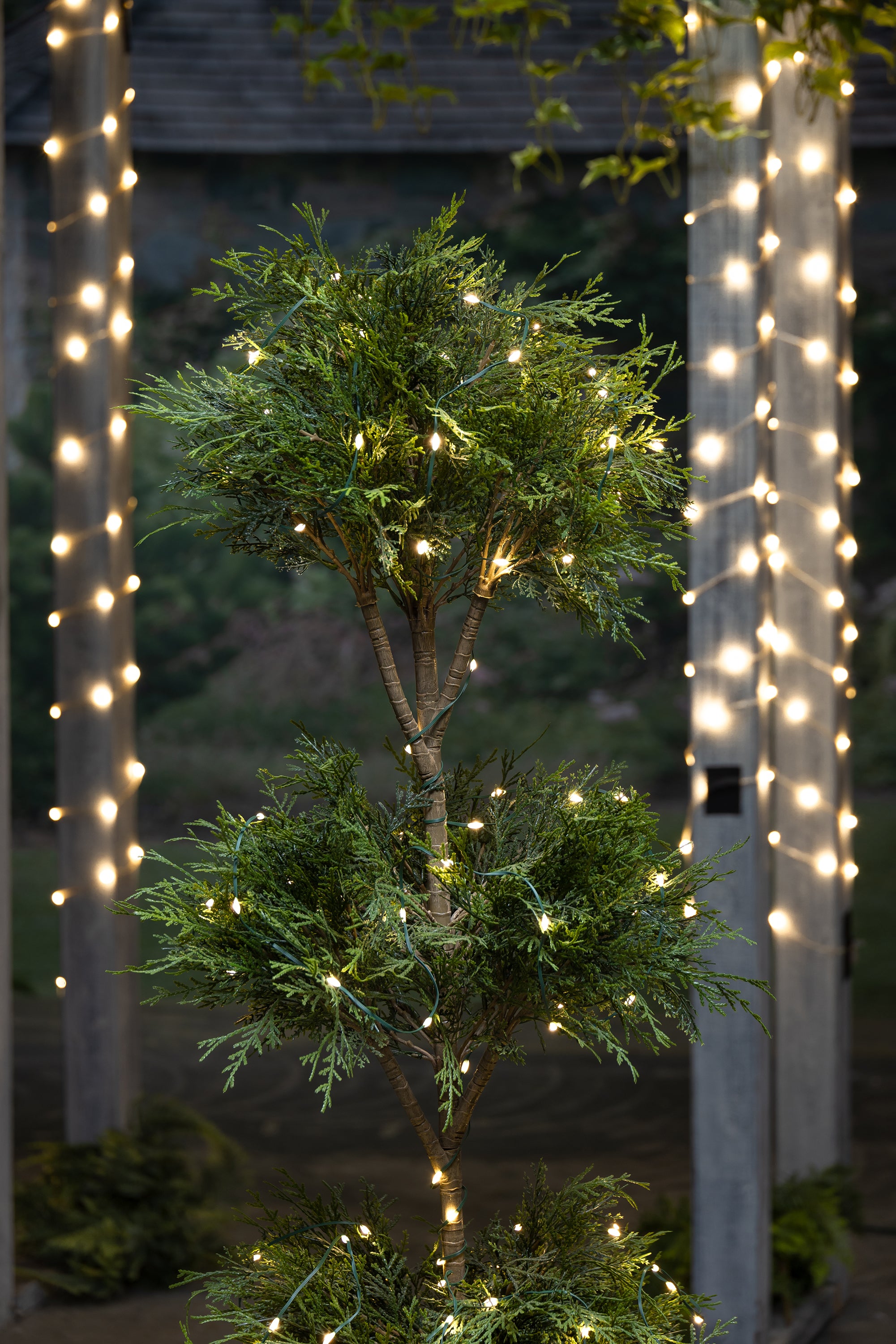 Light up your neighborhood w/this 50'long Micro LED string lights! w/150 warm white LED lights spaced 4"es apart, on a green wire you will be able to dress up your home or yard w/holiday cheer! You can connect up to 4 of these light strings together. 9'long green lead wire w/outdoor UL adapter. / This 50-foot strand of micro LED lights will allow you to cover a large area / Brightly shining on a green wire to camouflage in bushes or trees / You can connect up to 4 of these strands for full coverage of any area / 151 Warm white lights spaced 4"es apart / 9'green lead cord, outdoor UL adapter / Indoor/outdoor use