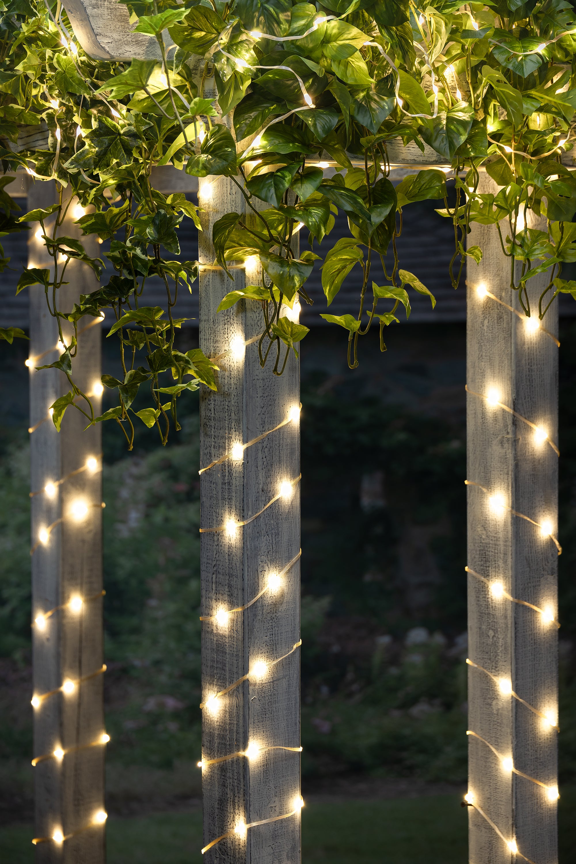 Light up your neighborhood w/this 50'long Micro LED string lights! w/150 warm white LED lights spaced 4"es apart, on a silver wire you will be able to dress up your home or yard w/holiday cheer! You can connect up to 4 of these light strings together. 9'long silver lead wire w/outdoor UL adapter. / This 50-foot strand of micro LED lights will allow you to cover a large area / Brightly shining on a silver wire / You can connect up to 4 of these strands for full coverage of any area / 150 Warm white lights spaced 4"es apart / 9'silver lead cord, outdoor UL adapter / Indoor/outdoor use