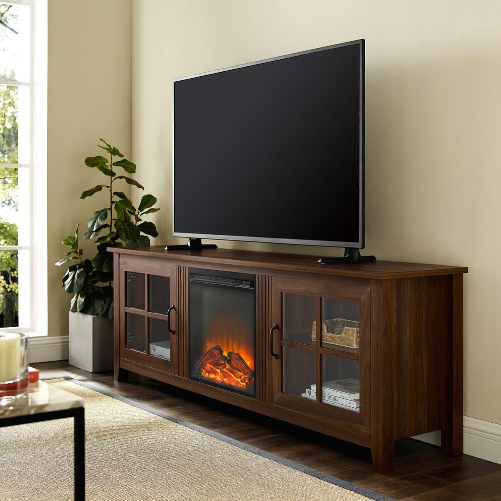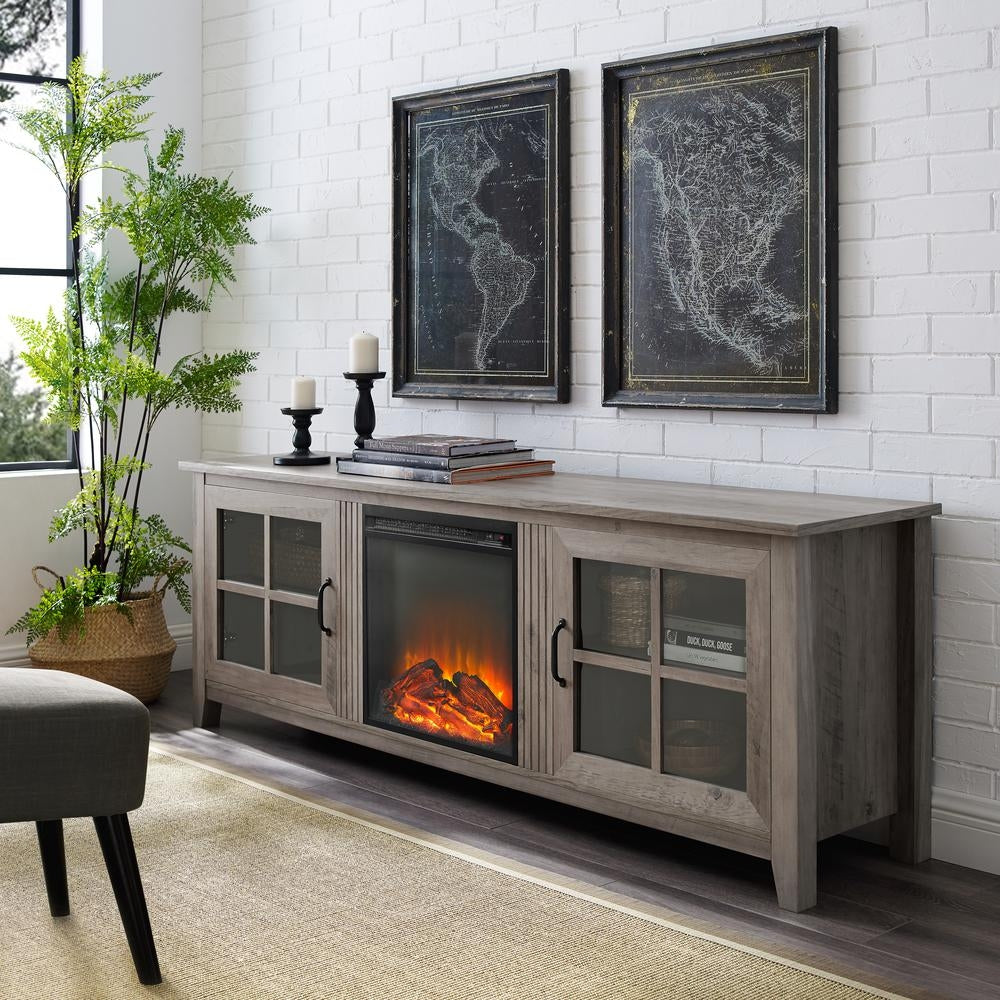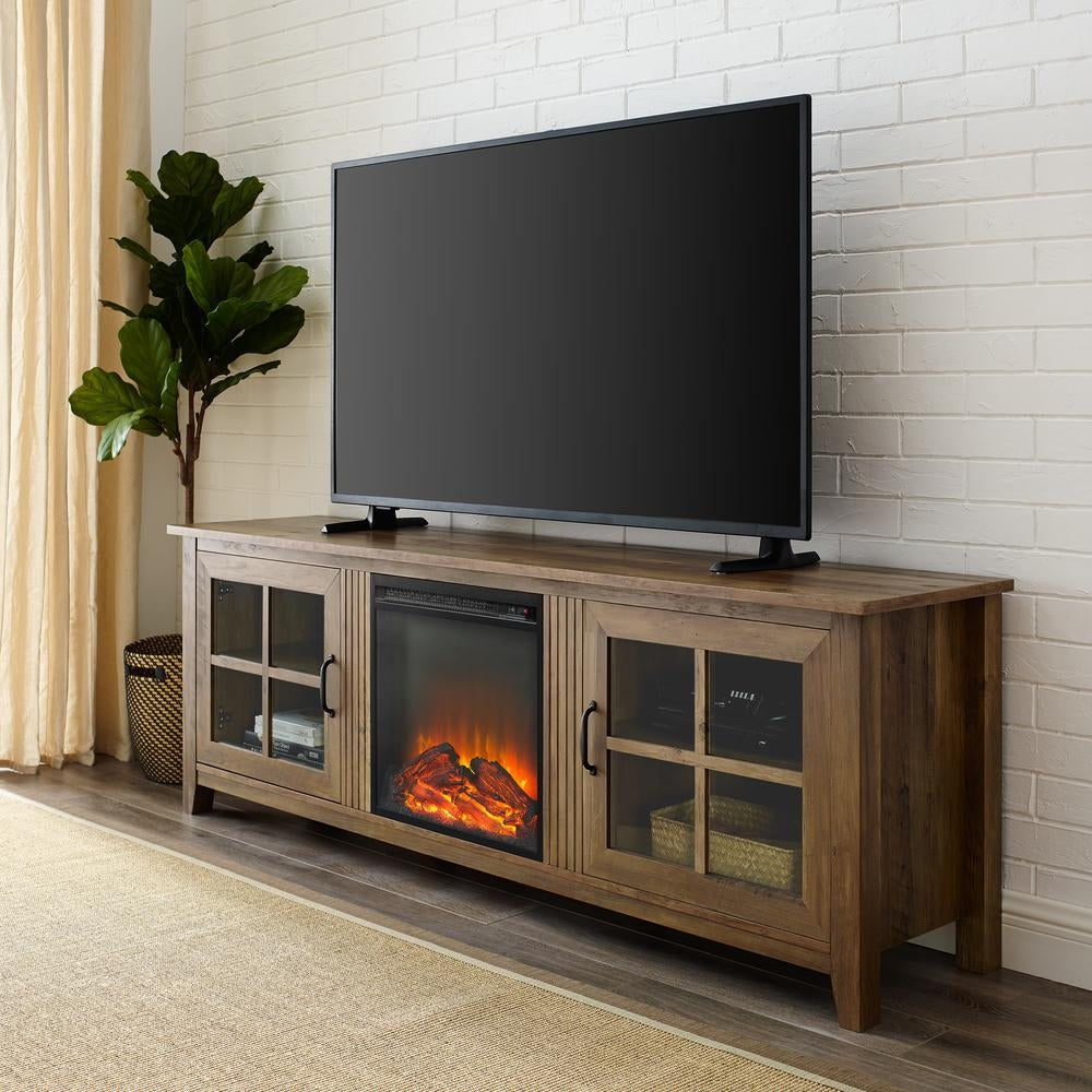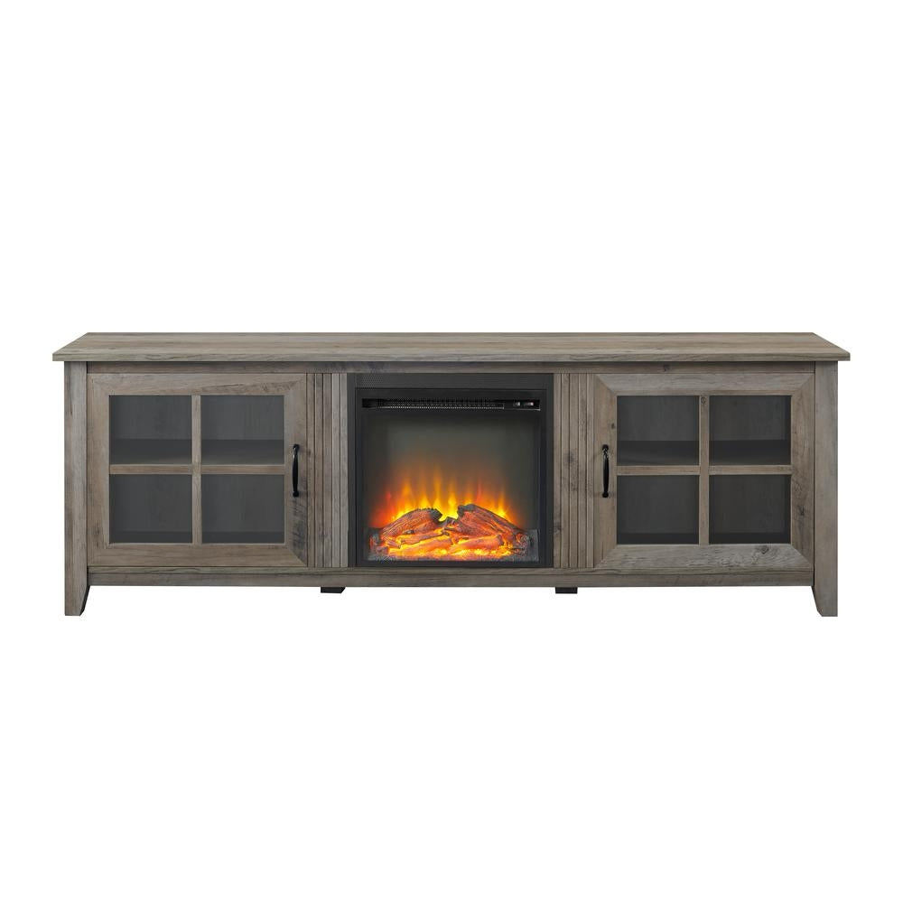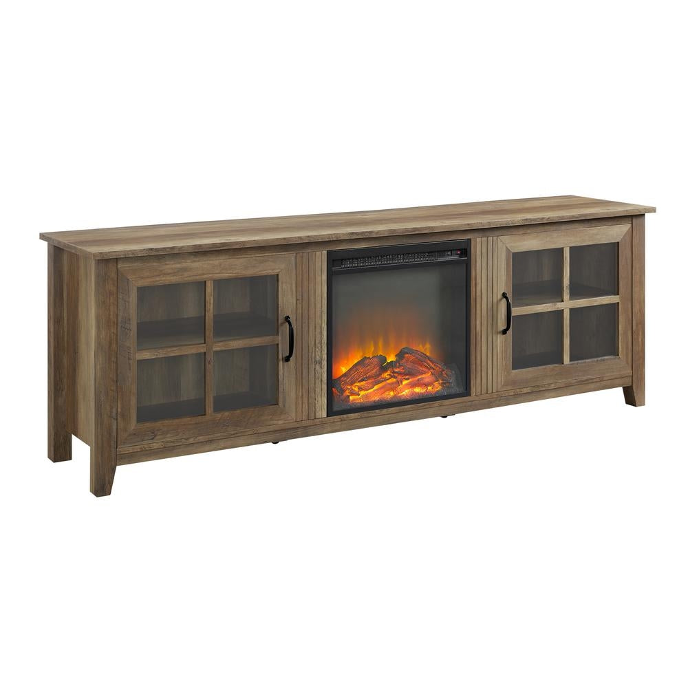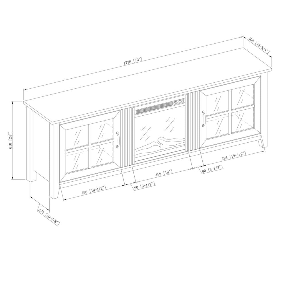 Welcome additional warmth to your home with this 70-inch fireplace TV stand. With a beautiful, farmhouse style made of high-grade MDF, durable laminate, tempered safety glass, and metal, including an electric fireplace front and center. The window pane side cabinets make items visible, whether to display books or DVDs. Including cord management and adjustable shelving in a traditional and transitional style. Cuddle up by the fireplace as you heat up the room, whether in your living room or bedroom. This entertainment center can hold up to a 78-inch TV or can be used as a storage console in your bedroom.