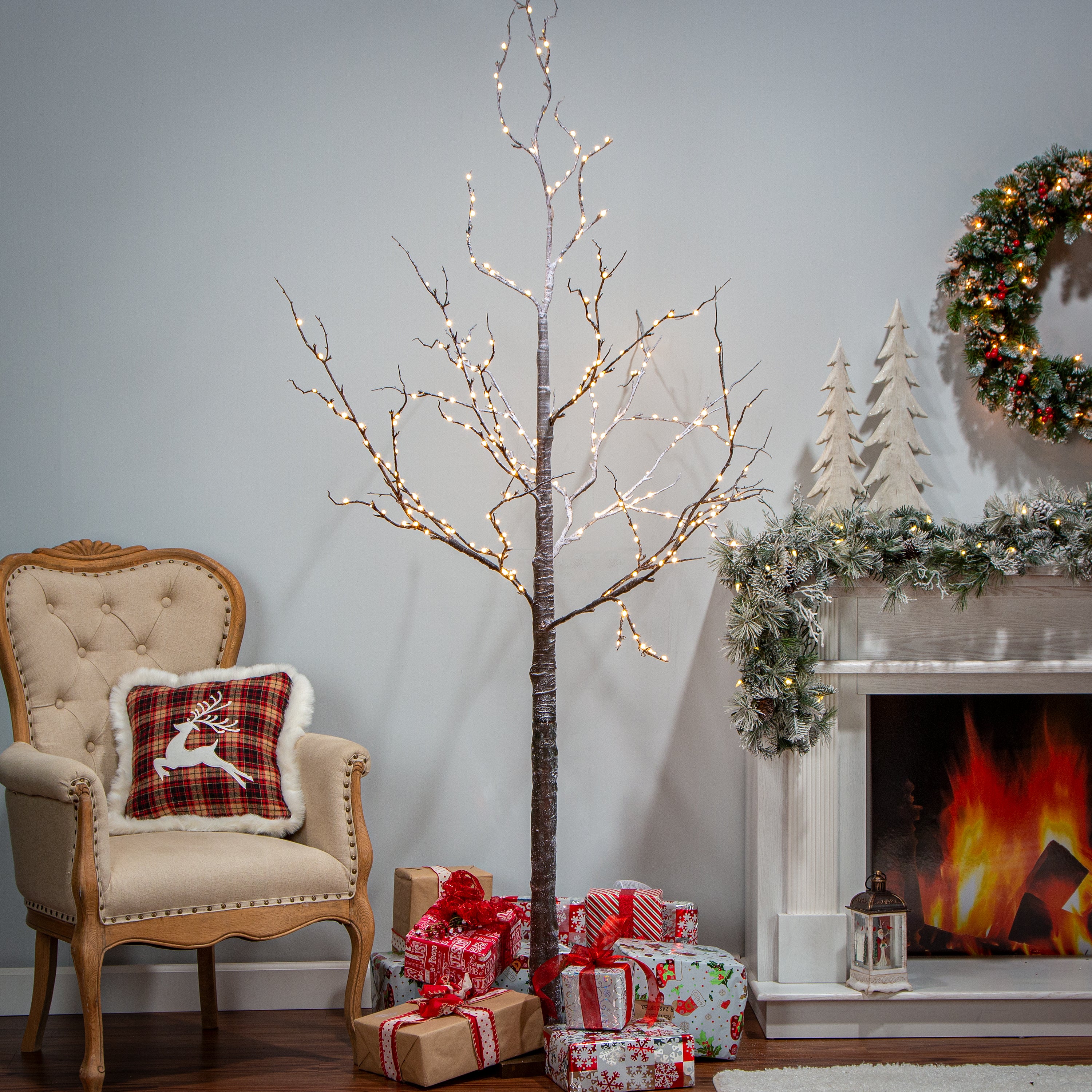 Bring winter elegance to your home with this beautiful lighted, snowy tree. No less than 250 softly glowing, warm white, energy efficient LED lights make this lovely tree truly a glory to behold shining through your window. At 82.67-inches tall, this gorgeous tree is a great option for smaller homes, hallways, foyers, apartments, college dorms and even office spaces. The tree has brown-wrapped branches and trunk and is adorned with faux snow covering the trunk and branches, bringing the beauty of winter to your home. For use indoors only this tree is lighted by a 9-foot brown UL-Listed lead cord.