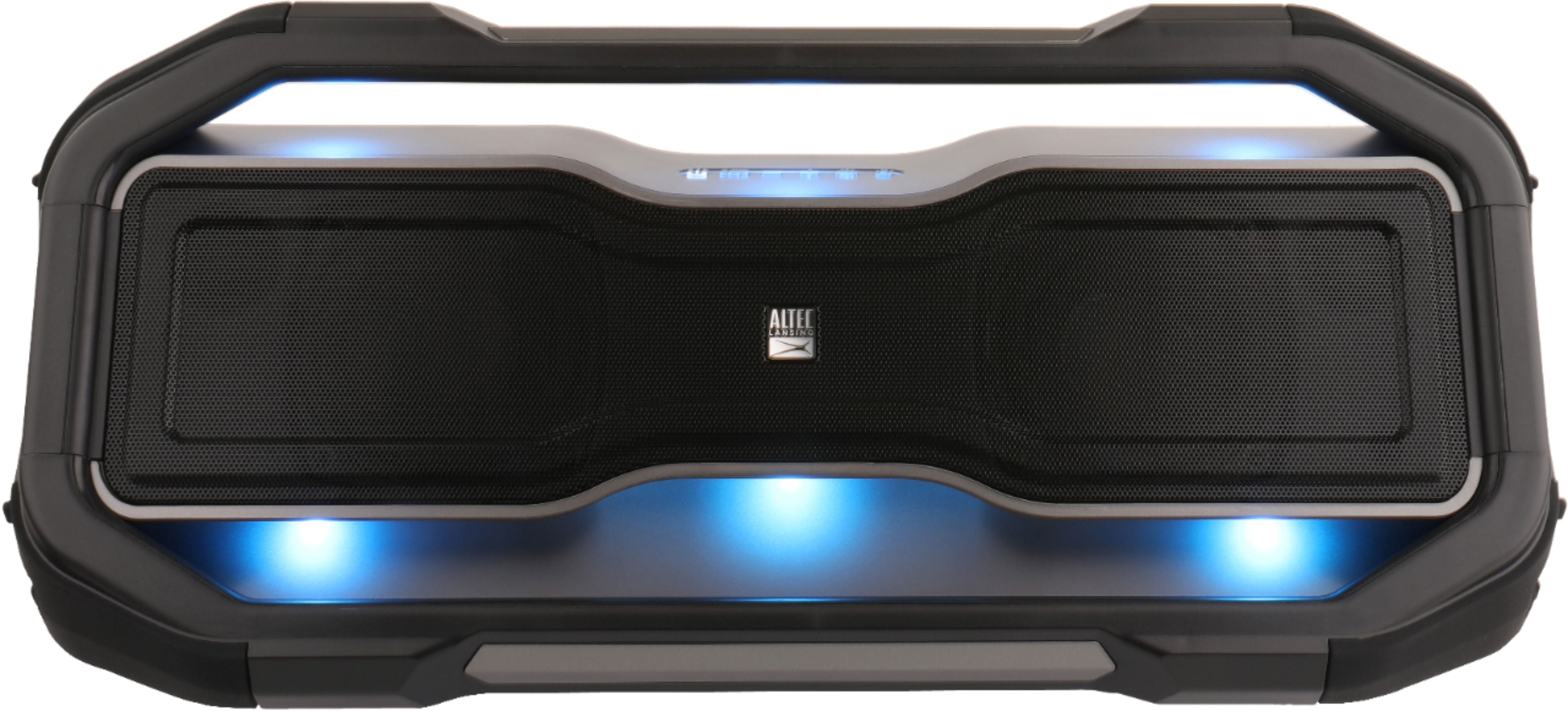 Enjoy loud music with this Altec Lansing Rockbox XL speaker. Bluetooth technology ensures seamless wireless connectivity with compatible devices while a rechargeable battery offers up to 20 hours of playtime. This Altec Lansing Rockbox XL speaker features five illuminated LED light modes to add to the party ambiance and has an IP67 waterproof rating for use both outdoors and indoors.