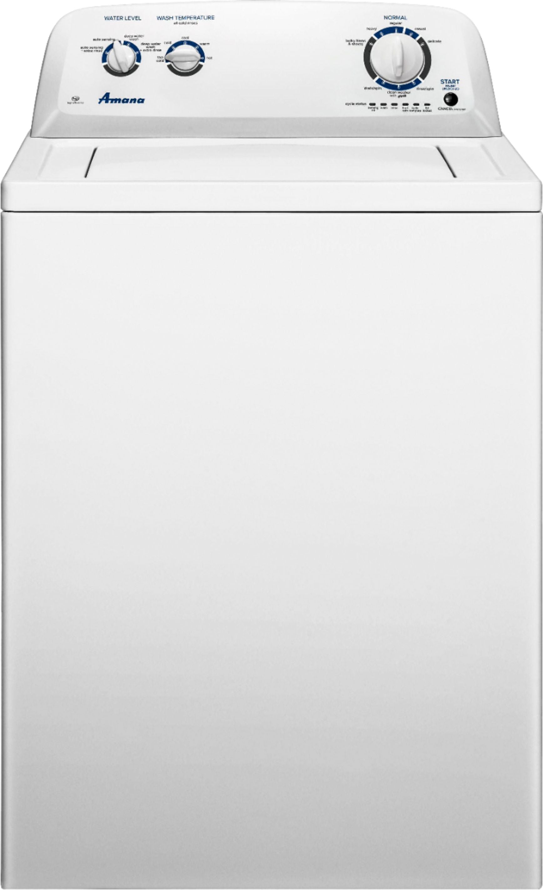 Wash your clothes with this Amana top-load washer. The dual-action agitator rolls clothes throughout the entire wash basket while the 680 rpm spin cycle removes water from clothing to dry them faster and the deep water wash option adds more water during the rinsing cycle. The Amana top-load washer has a porcelain tub to stop clothes from snagging.