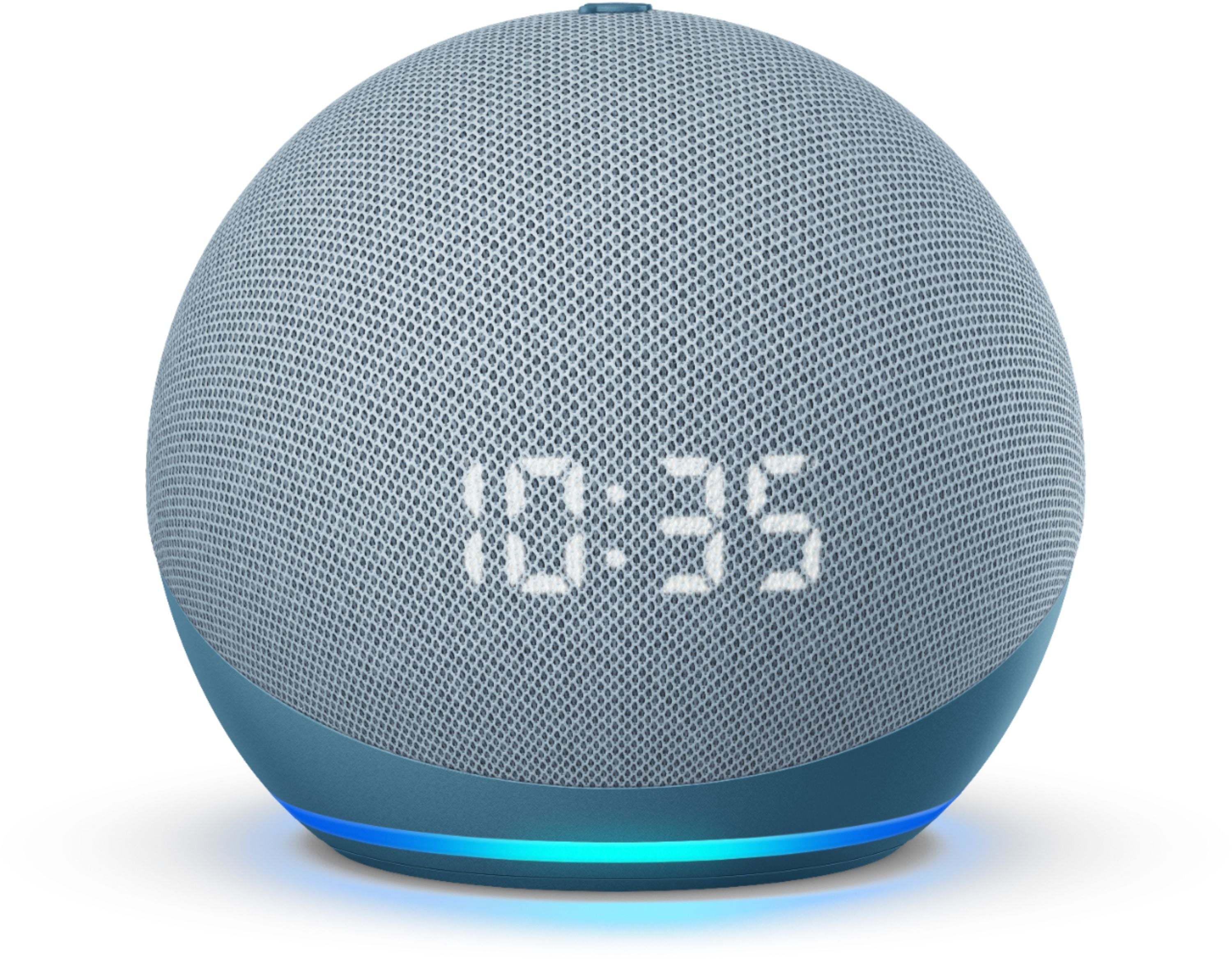 Meet the all-new Echo Dot with clock. Round out any room with Alexa. Our most popular smart speaker has a sleek, compact design that fits perfectly into small spaces. It delivers crisp vocals and balanced bass for full sound you can enjoy anywhere in your home. See the time, alarms, and timers on the LED display. Plus, tap the top to snooze an alarm.