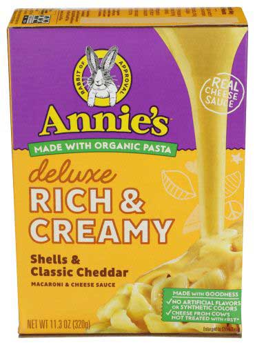 Annie's Homegrown Organic Deluxe Rich and Creamy Shells Classic Cheddar Macaroni and Cheese Sauce, 11.3 Ounce/12 per case.