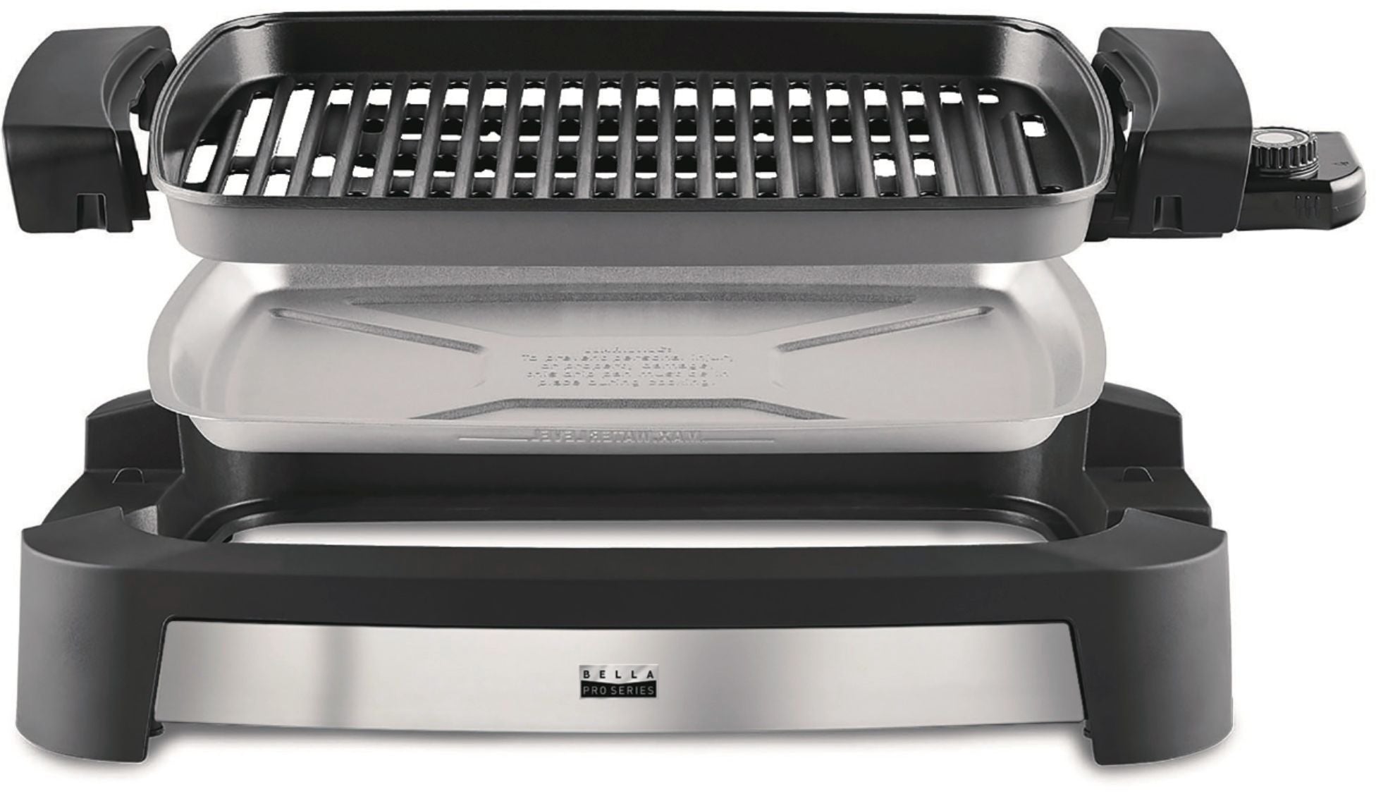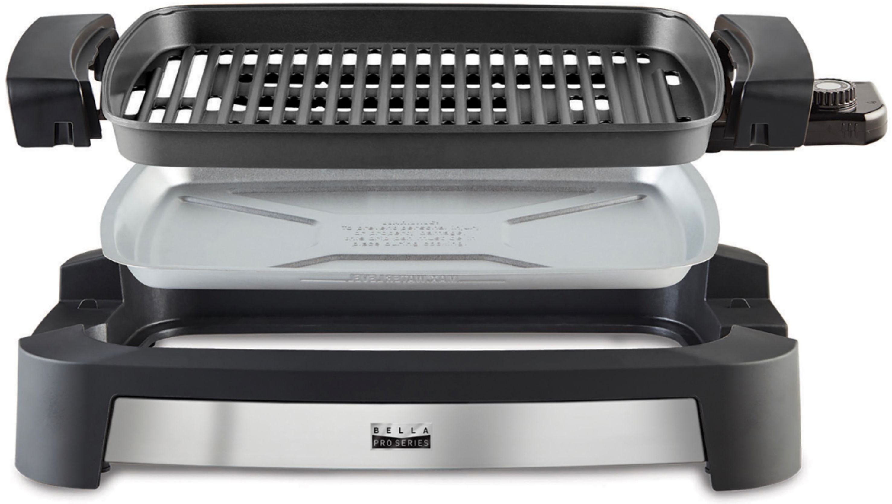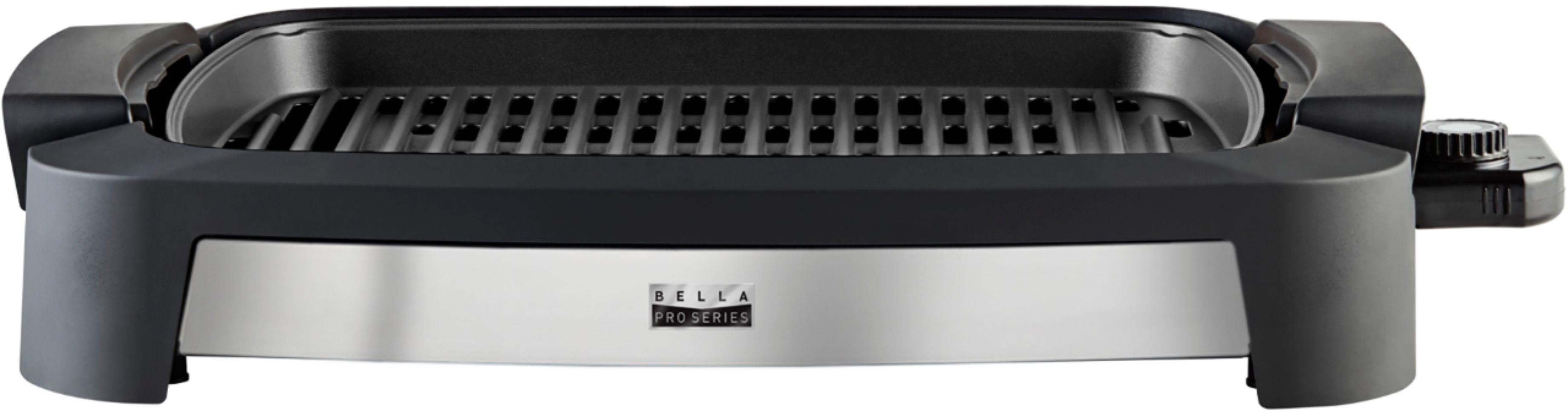 Whip up your barbecue favorites indoors with this large stainless steel Bella Pro Series Countertop Indoor Smokeless 12" x 16" Electric Grill. The cooling drip pan captures oil to provide healthier food and prevent smoke, while the cool-touch handles help keep hands burn-free. This Bella Pro Series Countertop Indoor Smokeless 12" x 16" Electric Grill uses a 1500W heating system that speeds up preheating time.