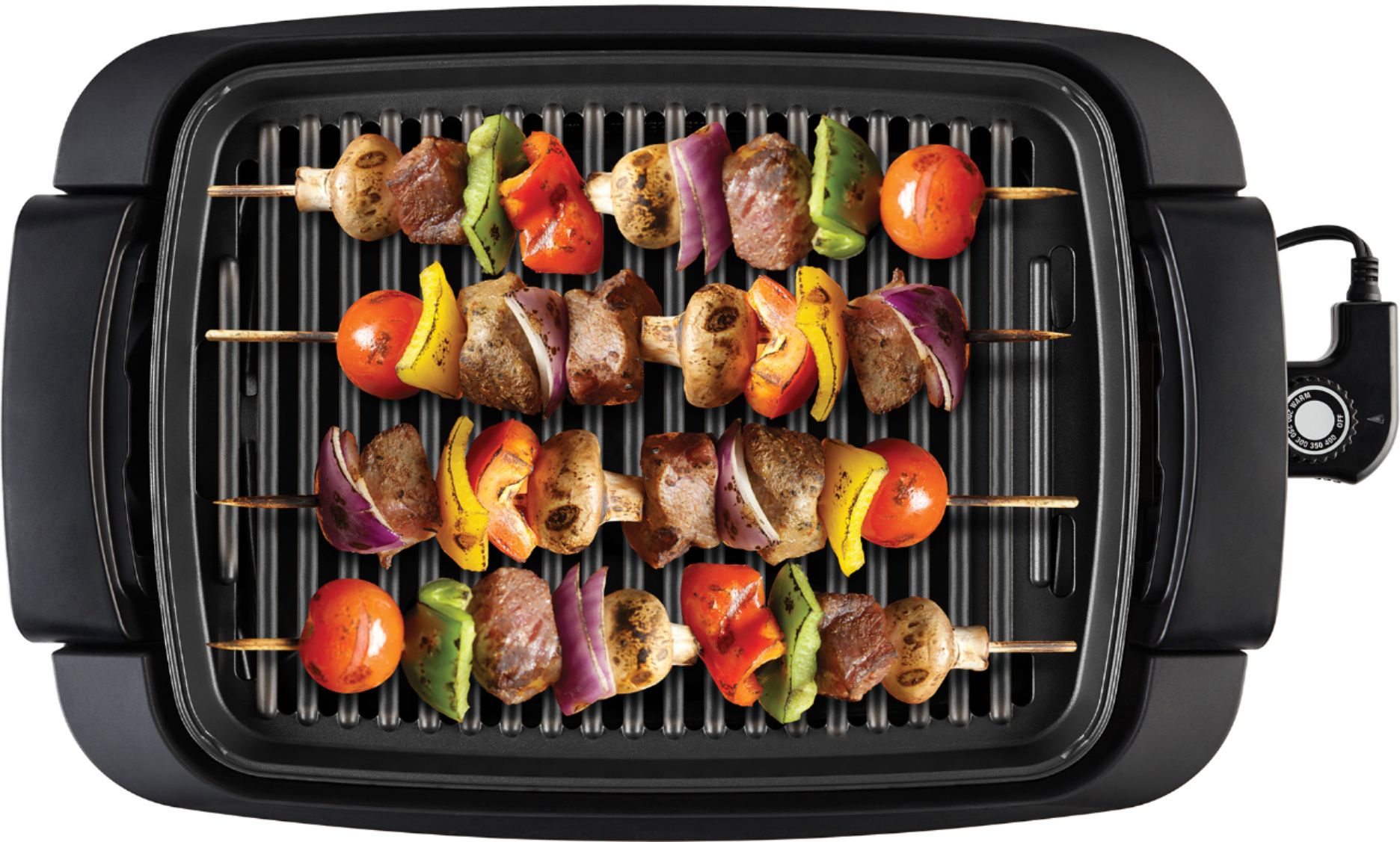 Allows you to grill up burgers, steaks, skewers, and more without smoke of an outdoor barbecue.