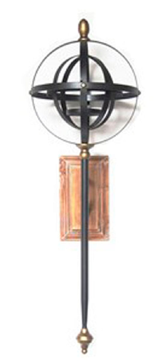 Black and Gold Finished Metal and Wood Wall Sconce. Sphere Design. Keyhole Bracket for Hanging.