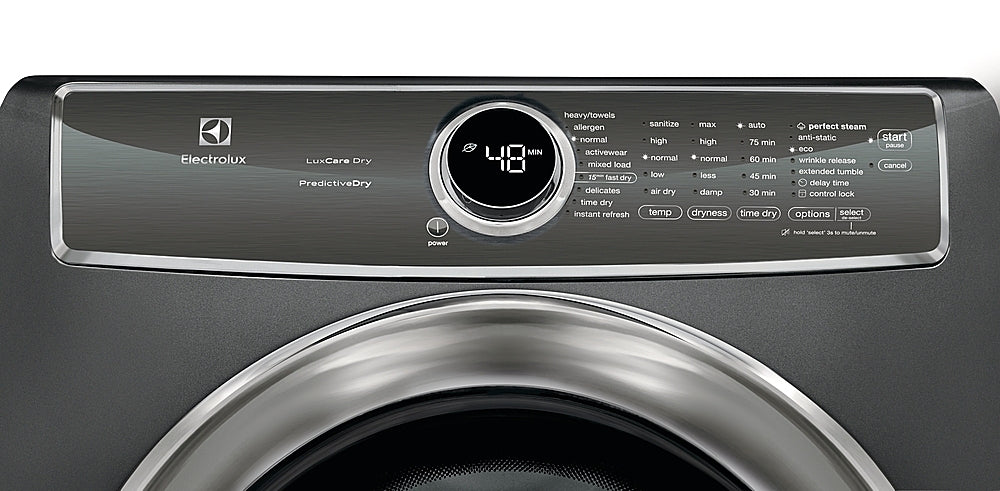 The Electrolux Perfect Steam™ electric dryer with Predictive Dry™ has a more precise sensor to protect fabrics from over drying. Remove wrinkles and quickly refresh items with steam in 10 minutes with instant Refresh cycle. Quickly dry the items you need most with the 15-Minute Fast Dry.
