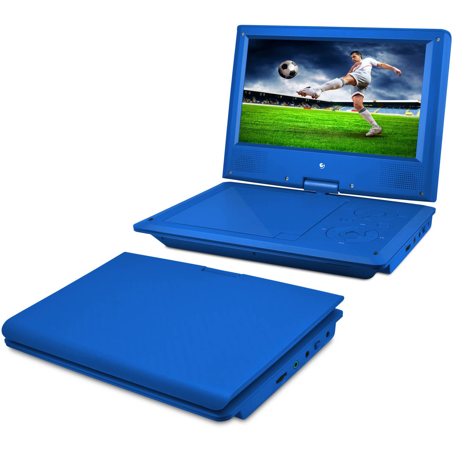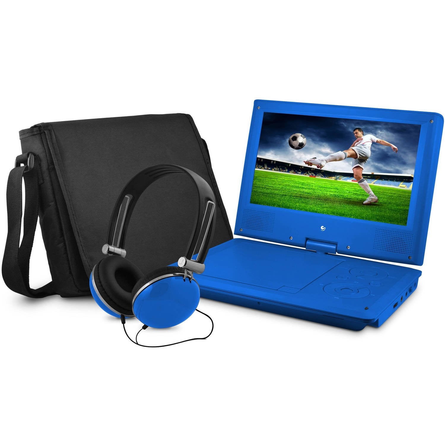 The Ematic 9" Portable DVD Player Bundle makes it easy to enjoy your favorite movies, videos, music and pictures while on the go! The screen tilts and swivels up to 180 degree, providing an optimum viewing angle no matter where you sit. The screen is 640 x 234 resolution and the player has a built-in stereo speaker, 3.5mm audio jack and A/V output. And it comes with matching headphones and bag!