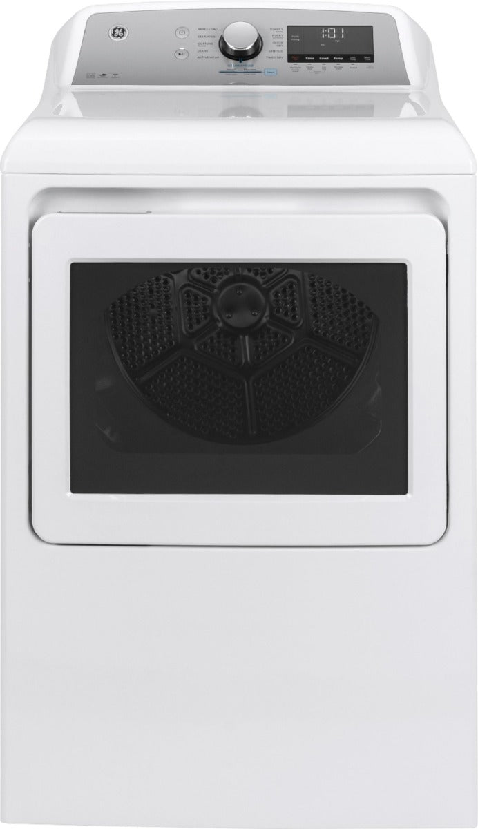 | (1) x *GE 7.4 Cu. Ft. 13-Cycle Gas Dryer with Steam White On White With Silver Backsplash |