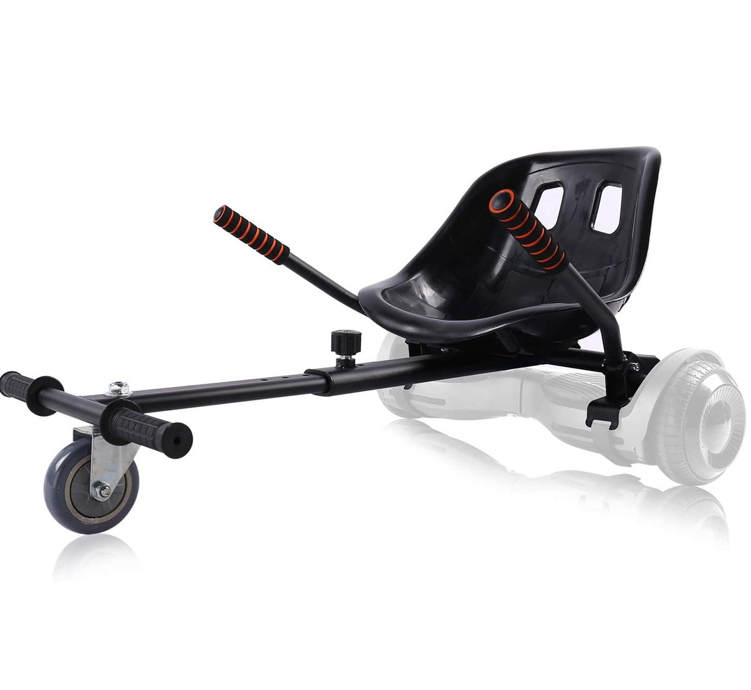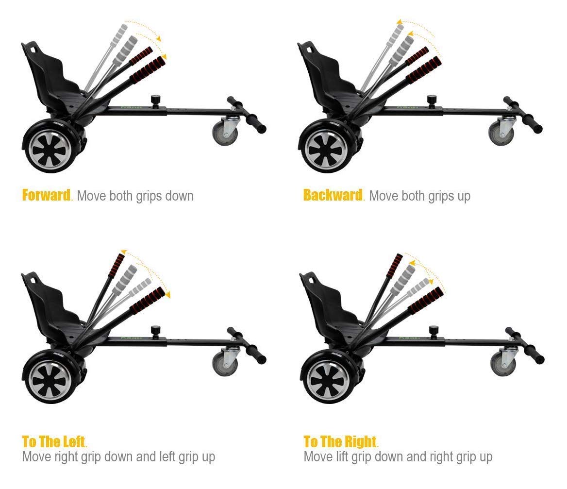 Explore the power of your Hoverboard. Compatible with most Hoverboards with 6 inch -10 inch tires.Adjustable frame length, Adjustable straps to securely attach buggy to Hoverboard.Hand-operation gives you full control of your riding experience.Independent rear wheel drive allows for quick turns and reverse driving.Easily Attaches to most Hoverboards. Hoverboard not included.