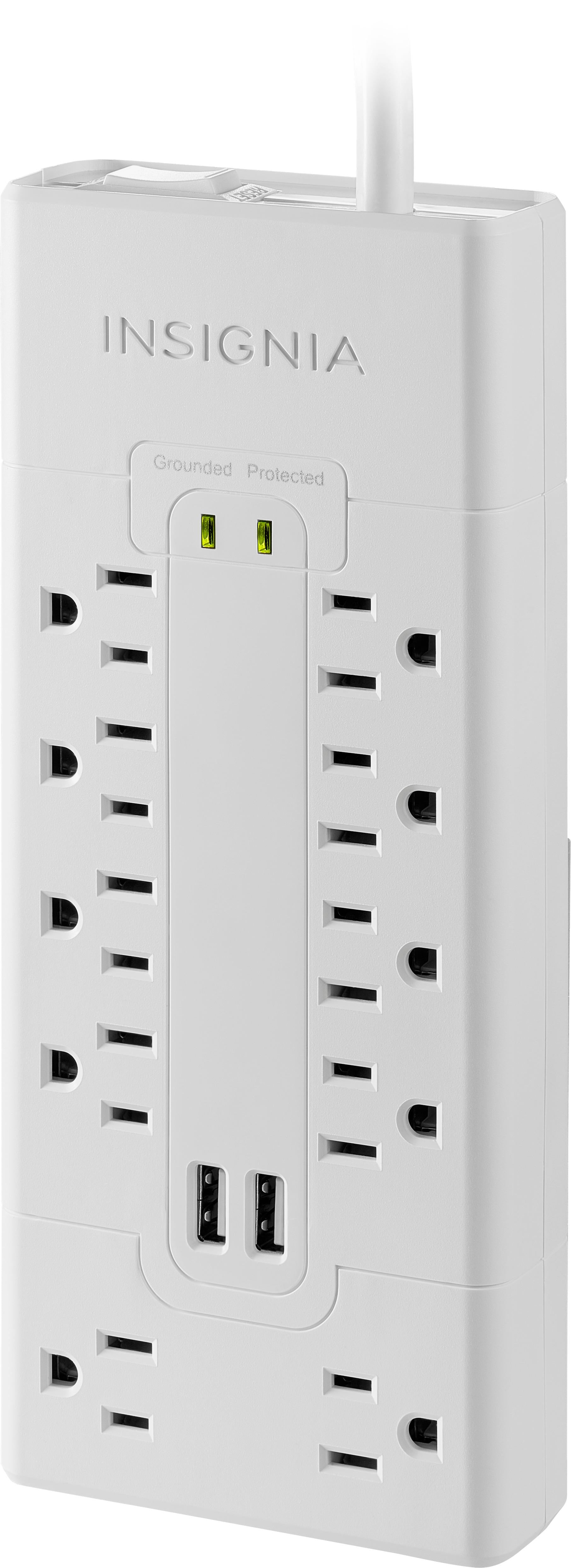 Set up a safe hub for multiple devices with this Insignia surge protector. It has 10 AC outlets for operating electrical appliances and two USB ports to power portable gadgets and its 6-foot cord provides extensive reach. This Insignia surge protector has a 2700-joule rating for ample power surge protection.