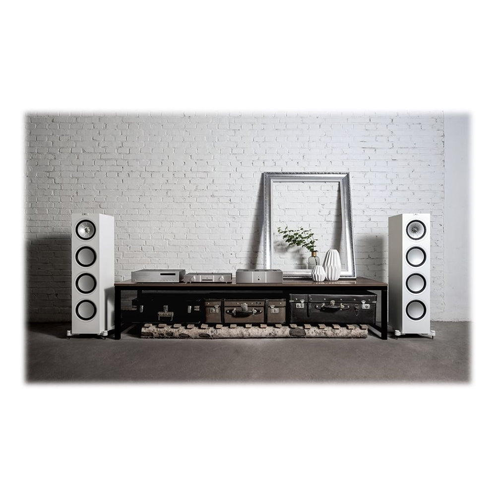 Enjoy accurate sound with this KEF tower speaker. Its specialized Uni-Q driver array places the tweeter in the center of the midrange for a room-filling detailed sound profile and locates it in a sealed box inside the cabinet for cleaner audio. The low-frequency driver of this KEF tower speaker produces deep dynamic bass with minimal distortion at high volumes.