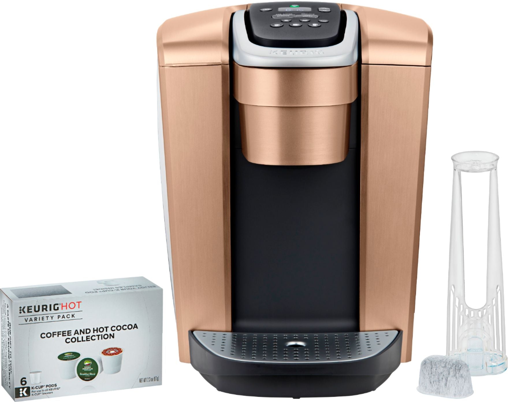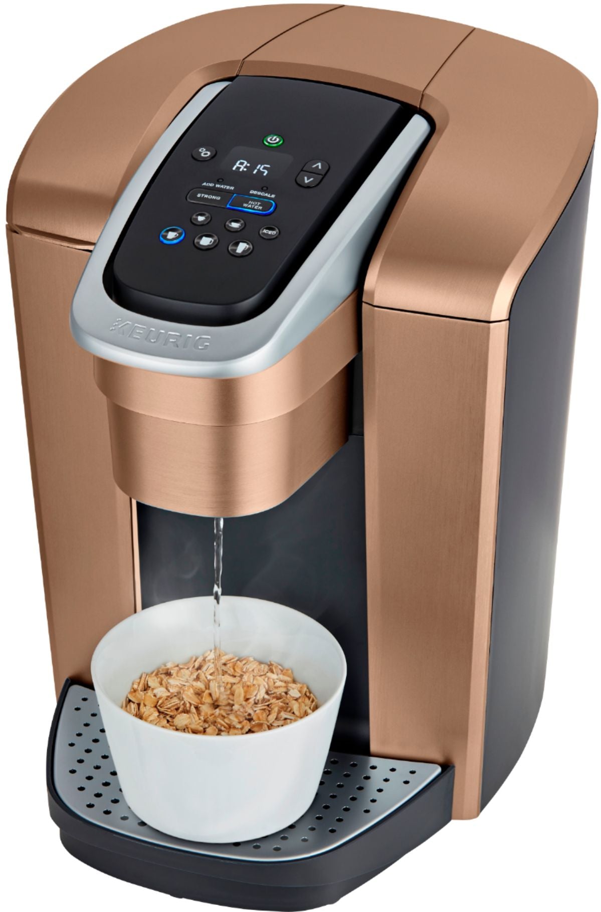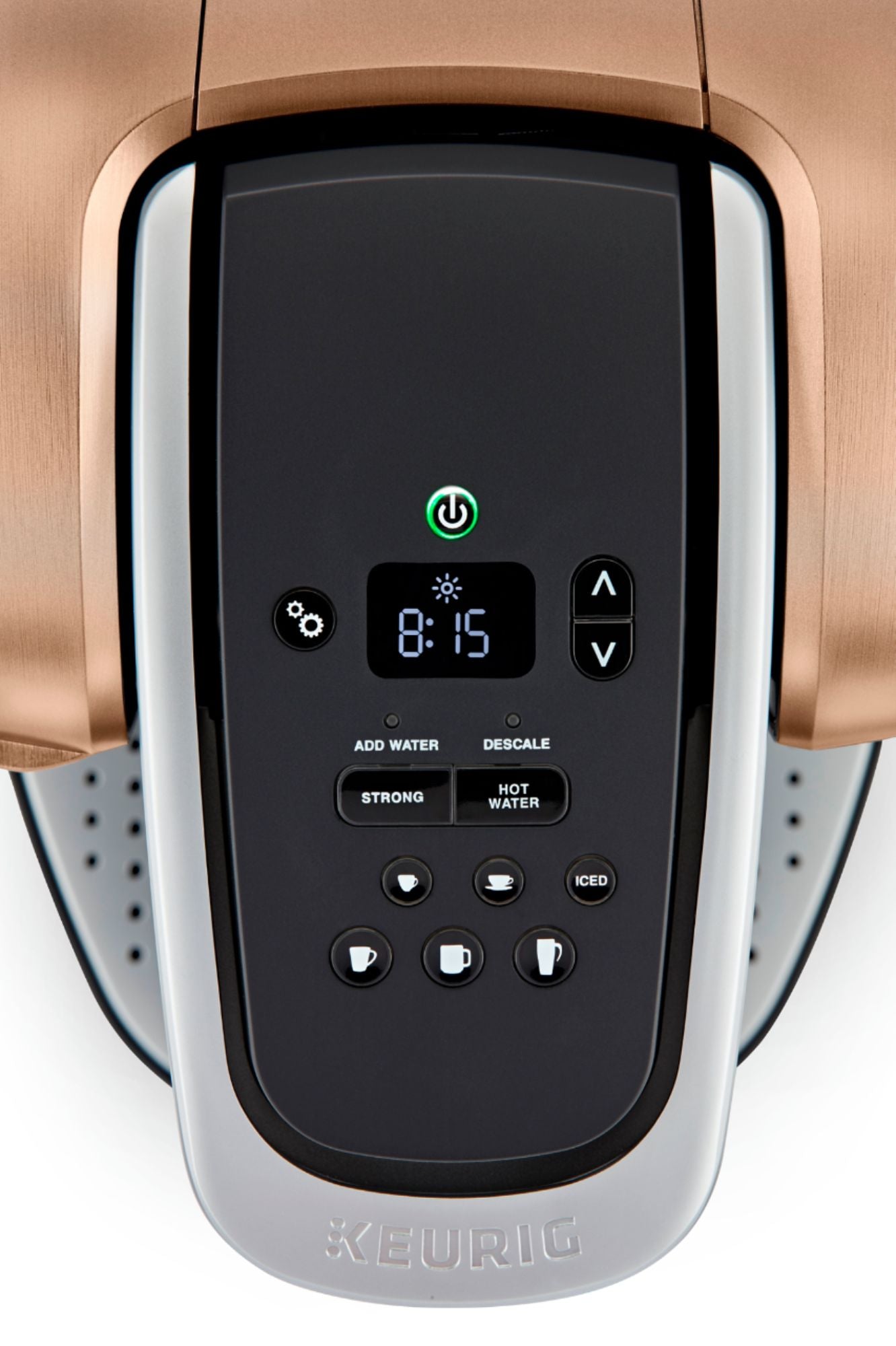Treat yourself to a delicious brew with this programmable Keurig K-Elite single-serve coffee maker. It accommodates five cup sizes to suit different beverages and the iced setting lets you brew hot coffee over ice for a full-flavored serving of chilled java. This Keurig K-Elite single-serve coffee maker brews a K-Cup pod in less than one minute for a quick pick-me-up.