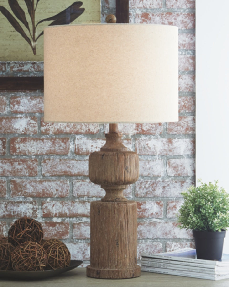 Shine a light on rustic refinement with this table lamp. Shapely, sophisticated base is teeming with faux wood texture. Antiqued brown finish enhances the natural appeal you crave, filling your home with on-trend yet casual vibes.