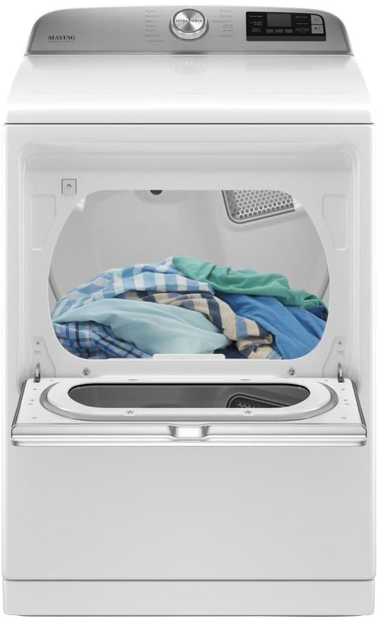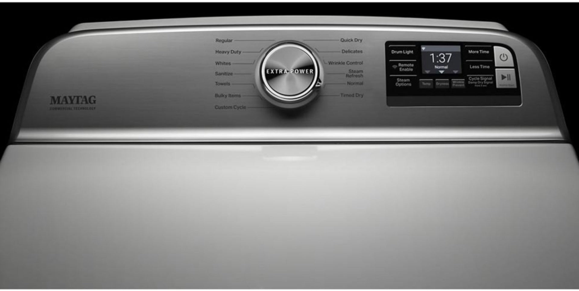 One push of the Extra Power button on Maytag heavy-duty dryers boosts drying power on any cycle by extending time, heat, and tumbling. Commercial-grade dryer technology ensures it's built to last, while optional smart electric dryer features such as remote start and cycle notifications help you stay in control and efficiently manage laundry from anywhere.