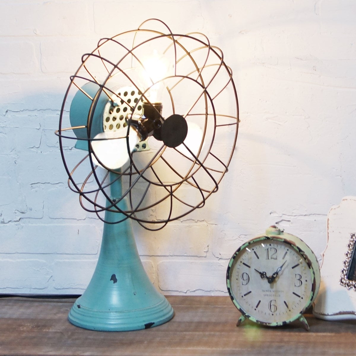 What an in genius way to re-purpose an everyday household item. Add some playfulness and light up your office or living room. Our faux fan table lamp is sure to be a conversation piece.USES 3 60 WATT BULBS NOT INCLUDED CORD: 65"