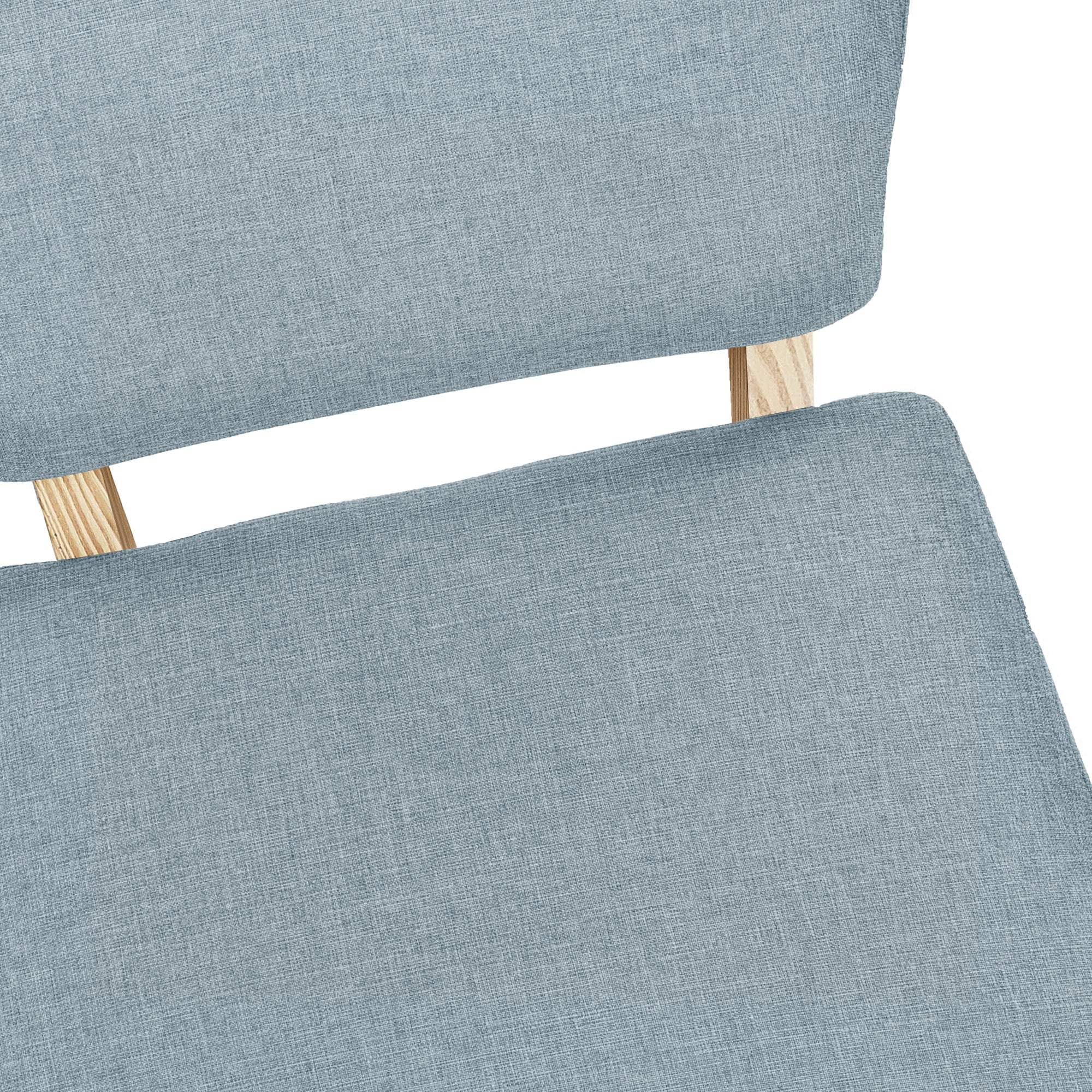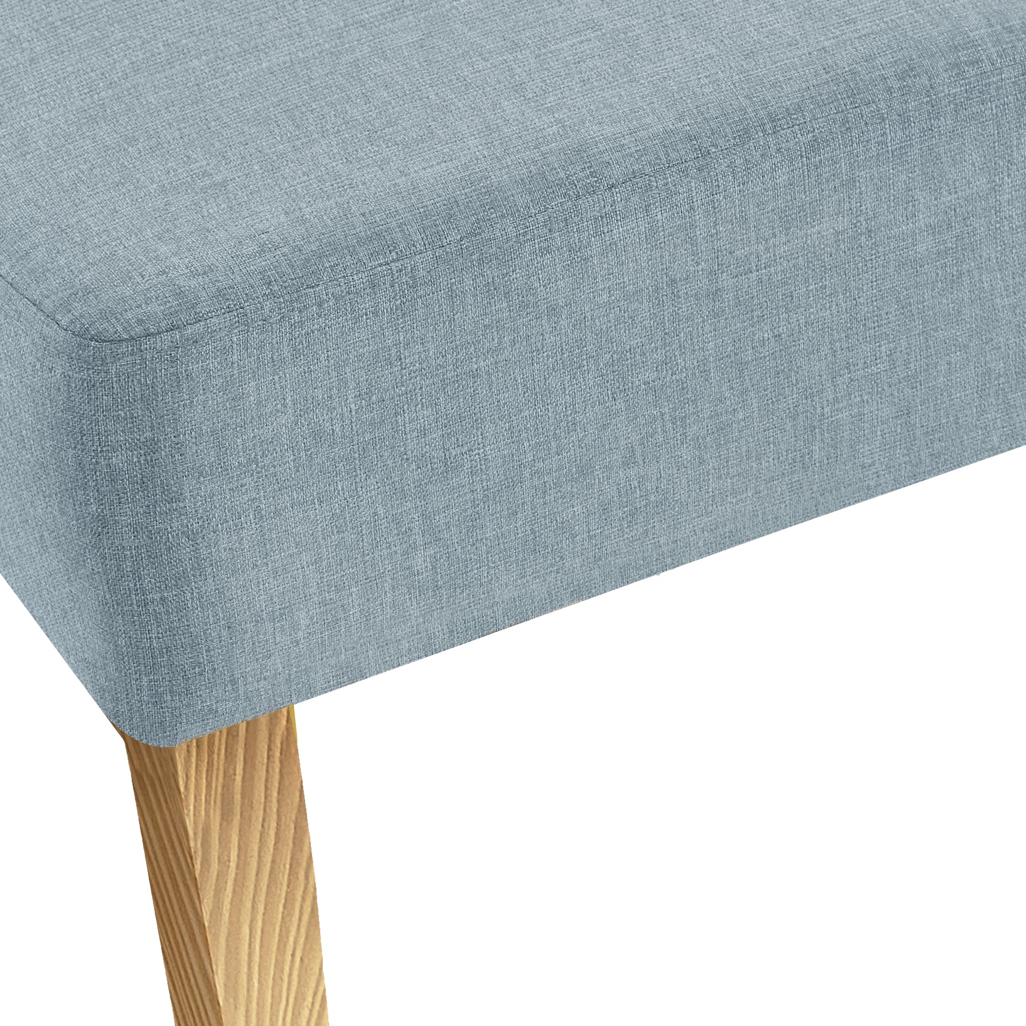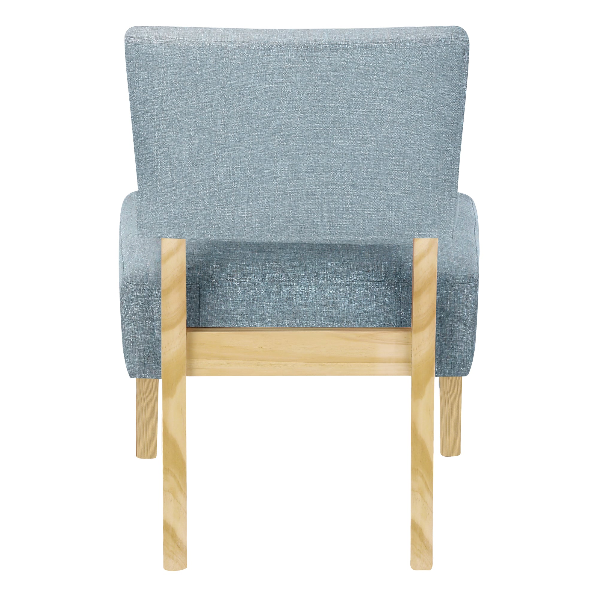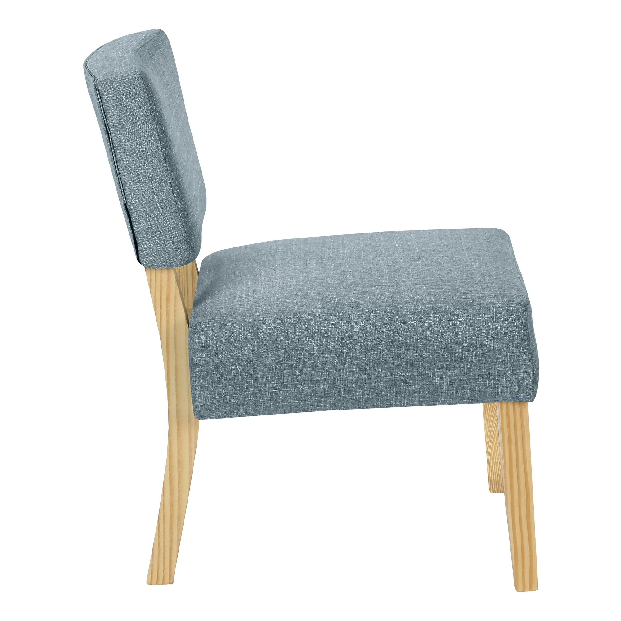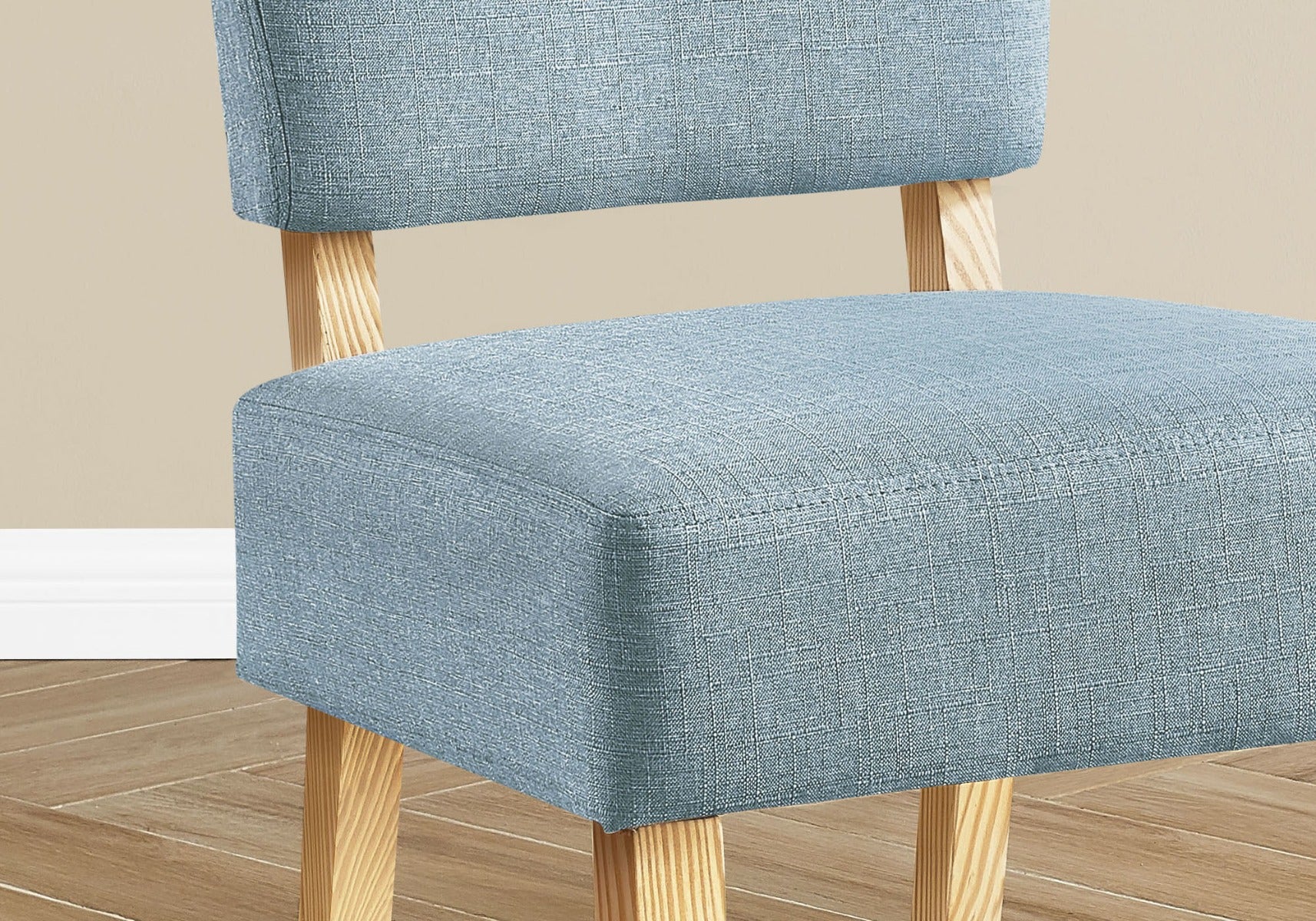 Add sophistication to any room with this armless accent chair featuring solid wood legs in a natural finish. Combining clean contemporary lines and retro style, this versatile chair will add flair to any living room or bedroom. Upholstered in a light blue linen-look fabric for maximum comfort.