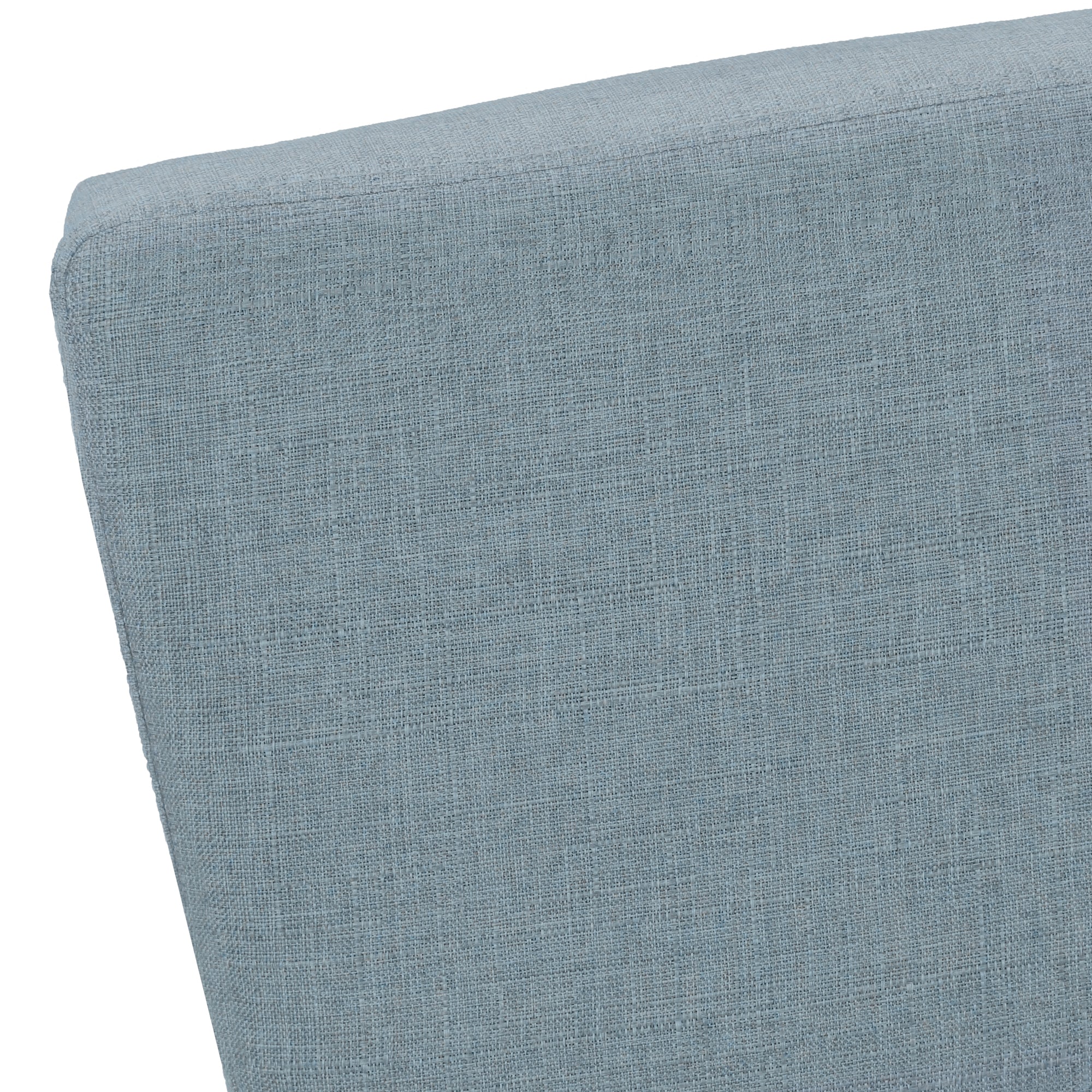 Upholstered armless accent chair in a light blue linen-look fabric