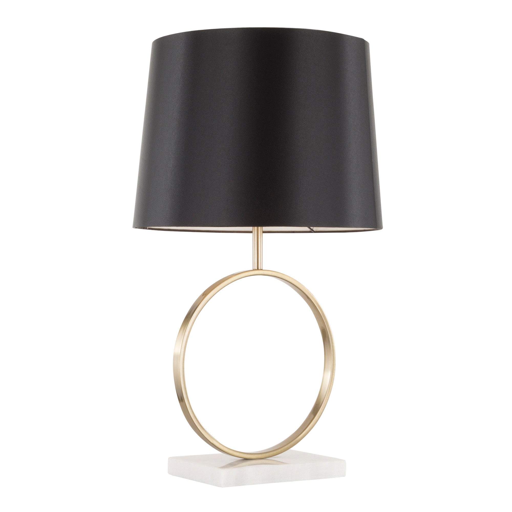 Moon Contemporary Table Lamp in White Marble, Gold Metal and Black Fabric Shade by LumiSource