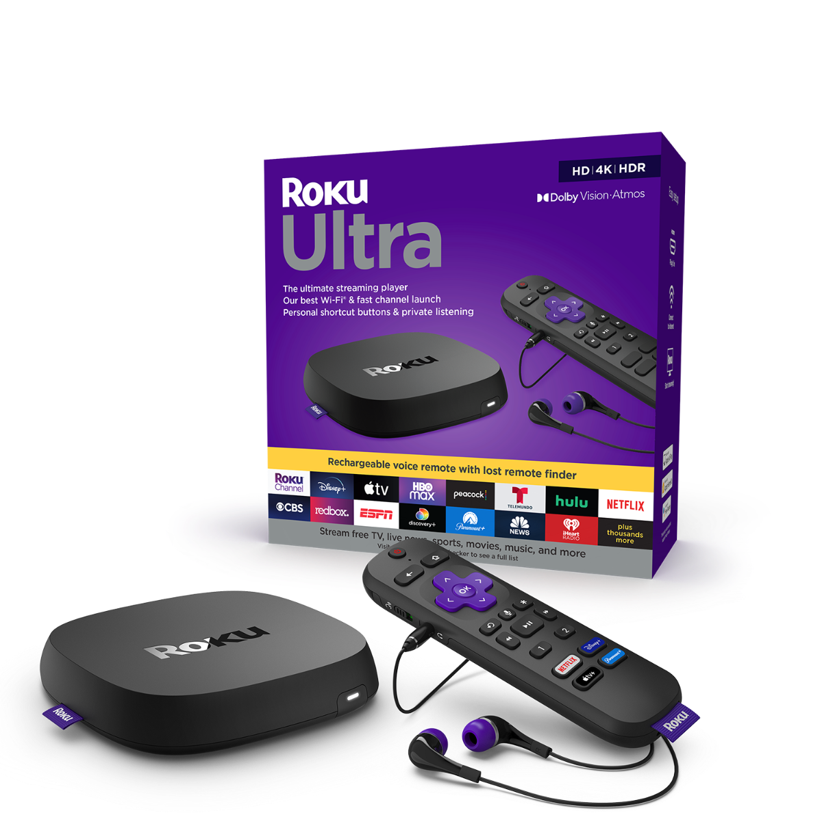 Roku Ultra is the ultimate streaming player, fully loaded with all of our best features. Enjoy powerful, smooth streaming with channels that launch in a snap and our best wireless, now with up to 50% more range.