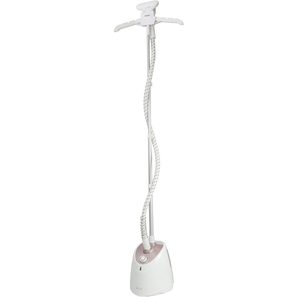 The Salav GS25-DJ Performance Series garment steamer features a fashion forward rose gold finish with a woven hose in a coordinating rose gold diamond pattern. The unique folding hanger swivels 360 degrees and holds up to 10 garments. With the SALAV patented aluminum heating system, 1500 watts of steam is delivered to refresh fabrics and release wrinkles. Simple and easy to use, just add distilled water, turn on the power knob and you will see steam in less than 45 seconds. When you are finished, the arms fold down to easily fit into your laundry room or closet for simple storage.