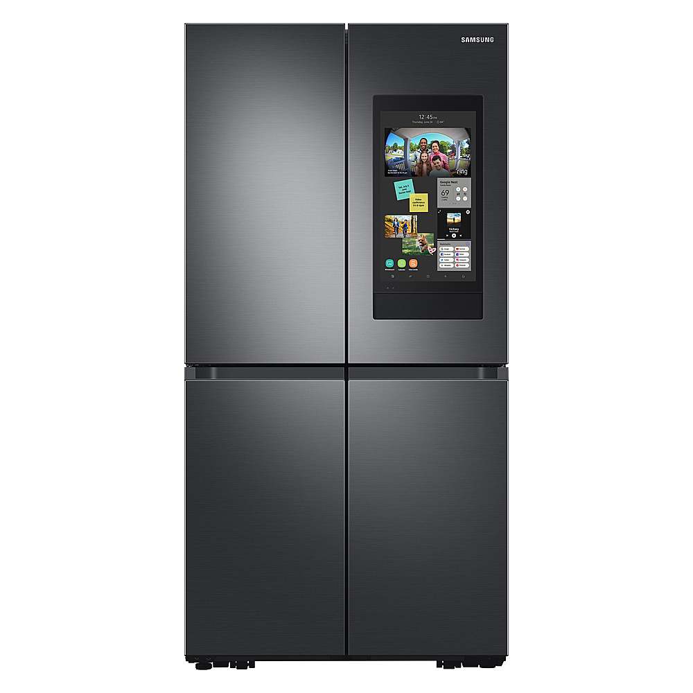 Extra-large capacity Smart 4-Door Flex™ refrigerator with Family Hub™ helps you connect to what's most important: your family and home. Samsung's Family Hub™ lets you see inside your refrigerator, manage your family's calendars, stream music, see who's at the front door and much more, all right from your fridge.
