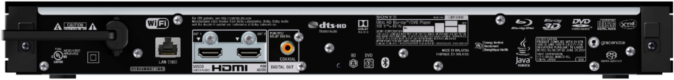 Enjoy movies and other streaming content with this Sony 4K Blu-ray disc player. Built-in Ethernet and Wi-Fi connectivity allow for media to be streamed in high quality while a super quick start mode minimizes fuss during use. This Sony 4K Blu-ray disc player has two HDMI outputs for simultaneous use with multiple screens.